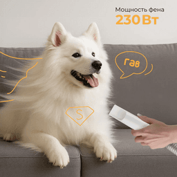- Режим фена с регулируемой температурой. Фен мощностью 230 Вт поддерживает холодный, теплый и горячий обдув с точной электронной регулировкой, что позволяет подобрать комфортную температуру для сушки шерсти без риска перегрева.