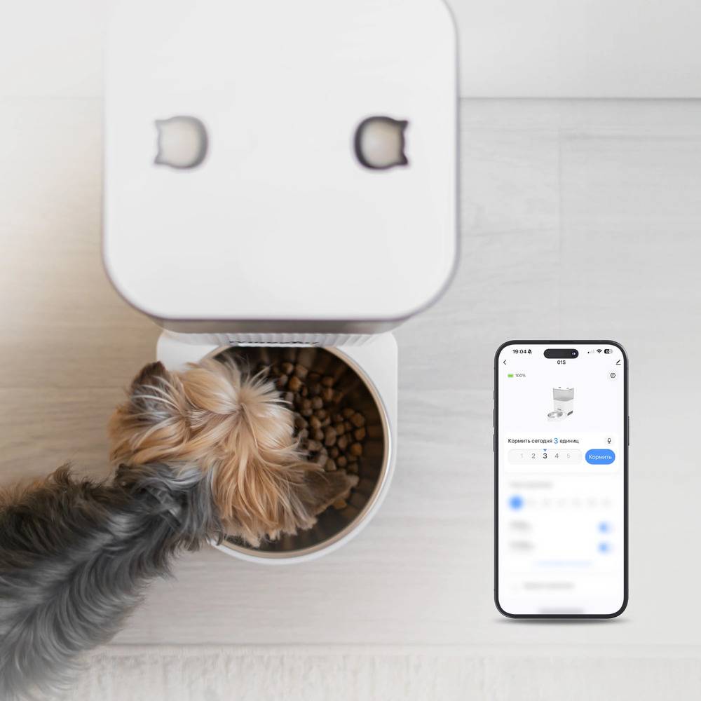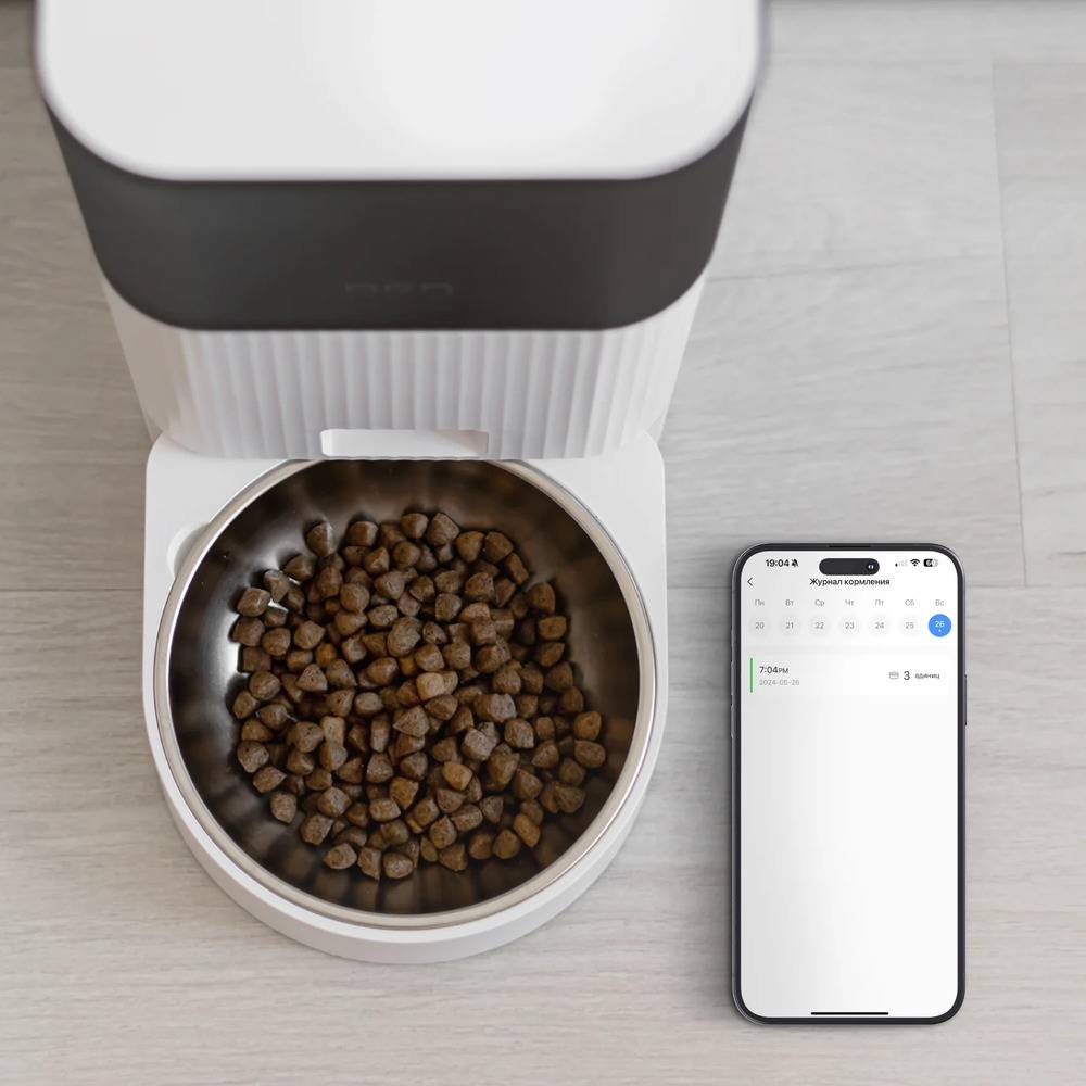 Кормушка управляется при помощи мобильного приложения и постоянно подключена к сети Интернет. Когда закончится корм, кормушка пришлет сообщение в мобильное приложение. Через приложение вы также можете покормить животное в любой момент, а не только по заранее настроенному графику на неделю, месяц, год.