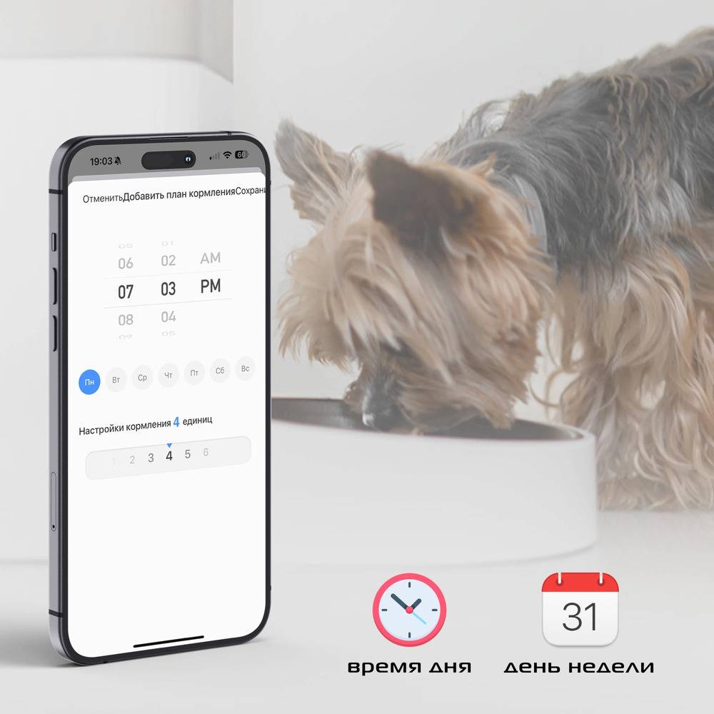 Запишите голосовое сообщение, и кормушка будет воспроизводить его при выдаче корма. Это создаст ощущение вашего присутствия для питомца, обеспечит дополнительный комфорт и спокойствие питомцу.