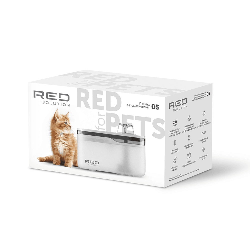 Поилка автоматическая для животных RED FOR PETS 05 – больше не нужно постоянно проверять свежесть воды у вашего питомца. С автоматической поилкой от RED SOLUTION достаточно наполнить 2-литровую емкость и подключить устройство к сети. А 4-ступенчатая фильтрация воды, подача «фонтаном» или «водопадом» при помощи ультратихого насоса, надолго обеспечит свежесть воды. Удобно, что прорезиненные ножки надежно фиксируют поилку на любой ровной поверхности.