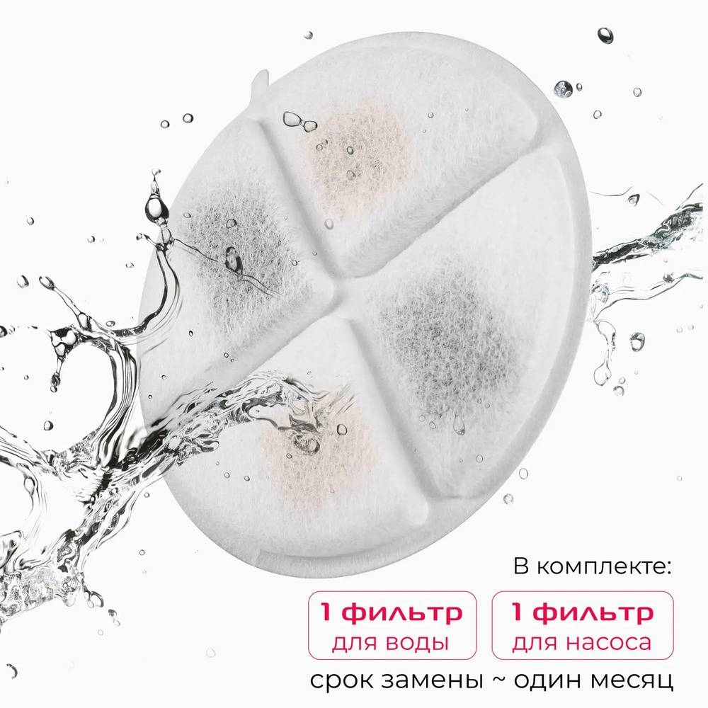Дополнительные сменные фильтры (приобретаются отдельно) удаляют неприятные запахи и улучшают вкус воды, что поощряет питомцев пить больше, а значит, чувствовать себя лучше. В среднем одного фильтра хватает на 1 месяц.