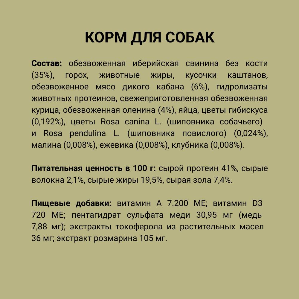 Dog & Dog WILD - REGIONAL FOREST – полноценный сбалансированный рацион для взрослых собак всех пород, создан на основе дичи из европейских лесов: иберийской свиньи, кабана и оленя.