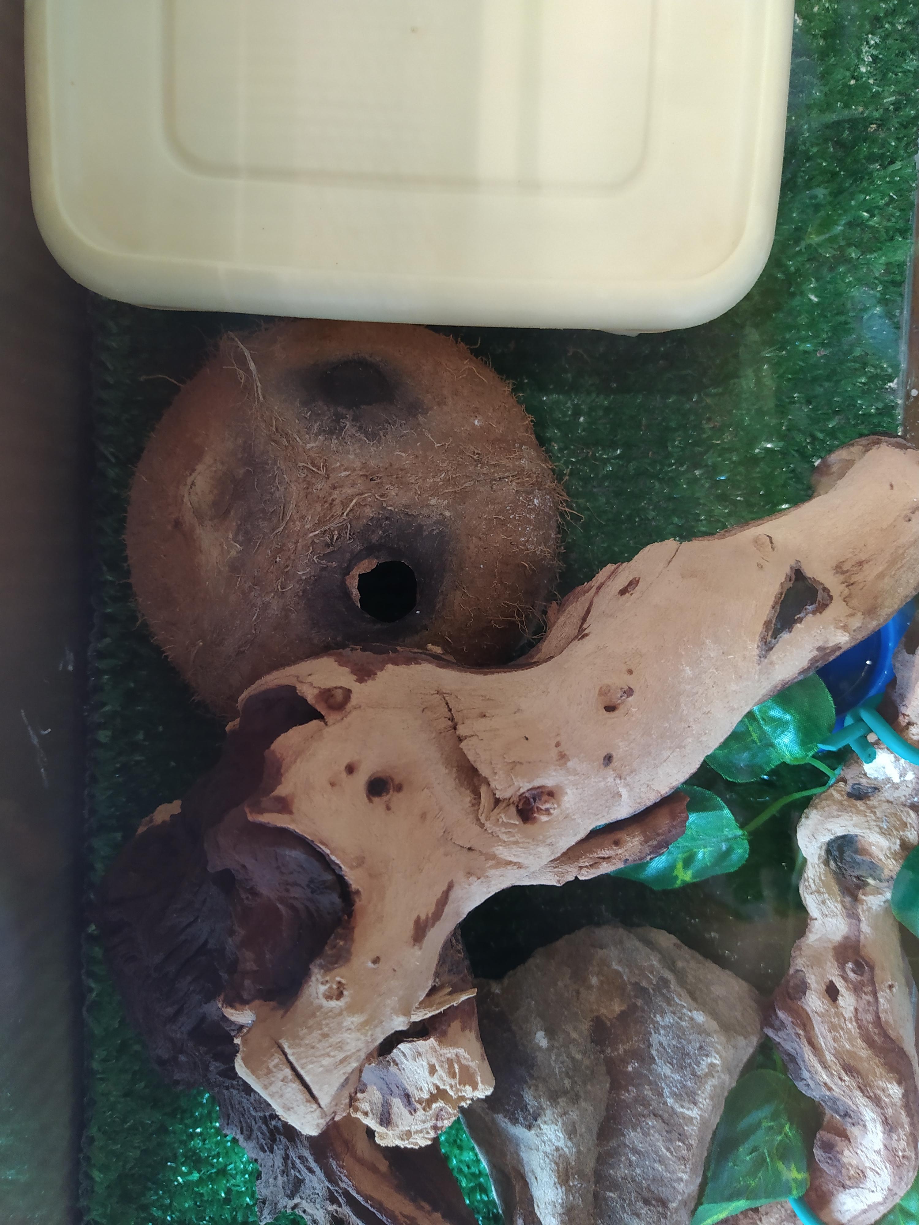 Натуральное укрытие для террариума - кокосовая кожура с отверстием. Подойдет в качестве укрытия для мелких ящериц, змей и пауков.