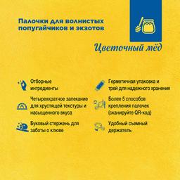 Палочки для волнистых попугайчиков и экзотов с медом содержат отборные ингредиенты и помогают разнообразить рацион питомца. Для хрустящей консистенции палочки выпекаются в печах по технологии бережного запекания, которая сохраняет все полезные свойства продукта. Основа лакомства – буковый стержень, который служит отличным инструментом для стачивания клюва.