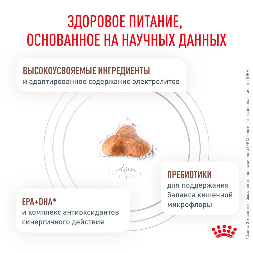 дегидратированные белки животного происхождения (птица), пшеничная мука, рис, изолят растительных белков*, пшеница, животные жиры, оболочки и семена подорожника (6 %), гидролизат белков животного происхождения (вкусоароматические добавки), растительная клетчатка, минеральные вещества, яичный порошок, рыбий жир, соевое масло, дрожжи и побочные продукты брожения, фруктоолигосахариды, гидролизат дрожжей (источник мaннановых олигосахаридов), экстракт бархатцев прямостоячих (источник лютеина).