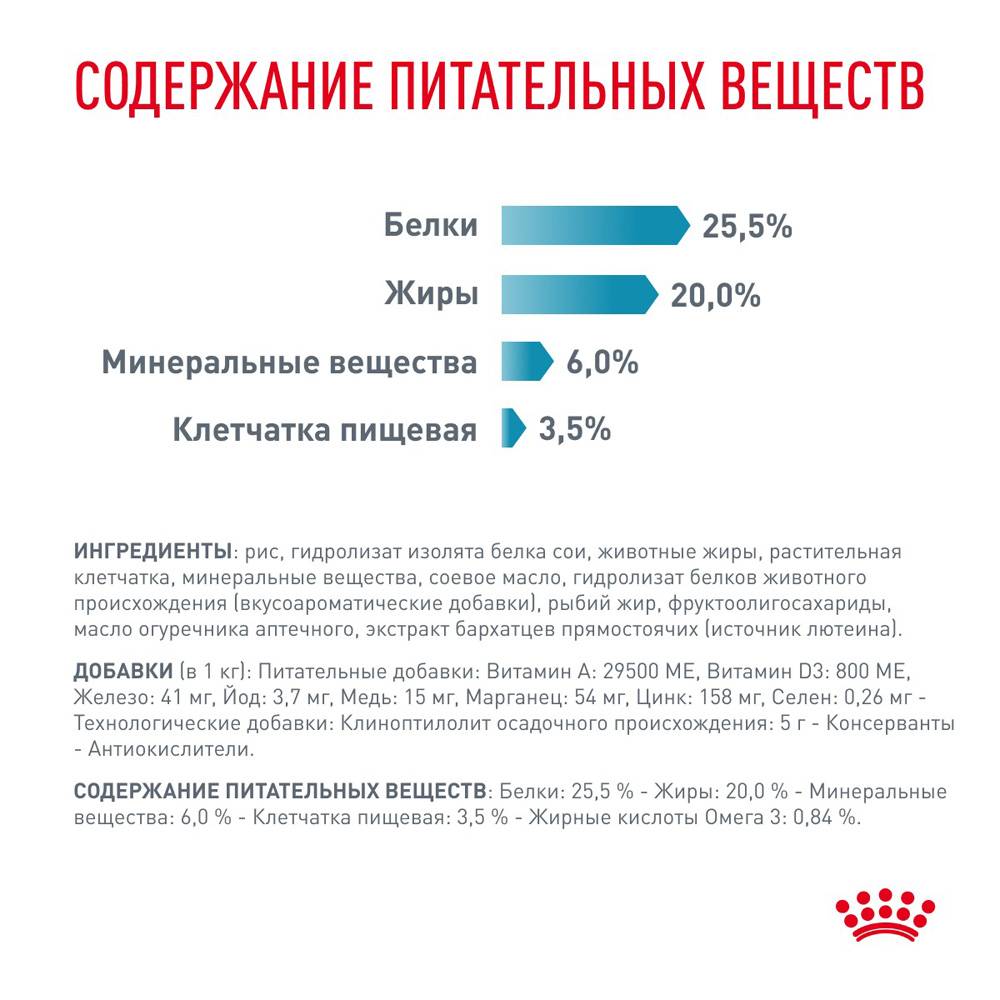 Сухой корм Royal Canin® Hypoallergenic (Гипоаллердженик) — полнорационный диетический корм для кошек, применяемый при пищевой аллергии или пищевой непереносимости некоторых ингредиентов. Специально отобранные источники белков и углеводов. Формула способствует снижению риска развития аллергических реакций благодаря гидролизованным белкам в составе, помогает поддерживать естественный защитный барьер кожи, содержит незаменимые Омега-3 жирные кислоты и нутриенты для поддержания здоровья пищеварительной системы и кожи.