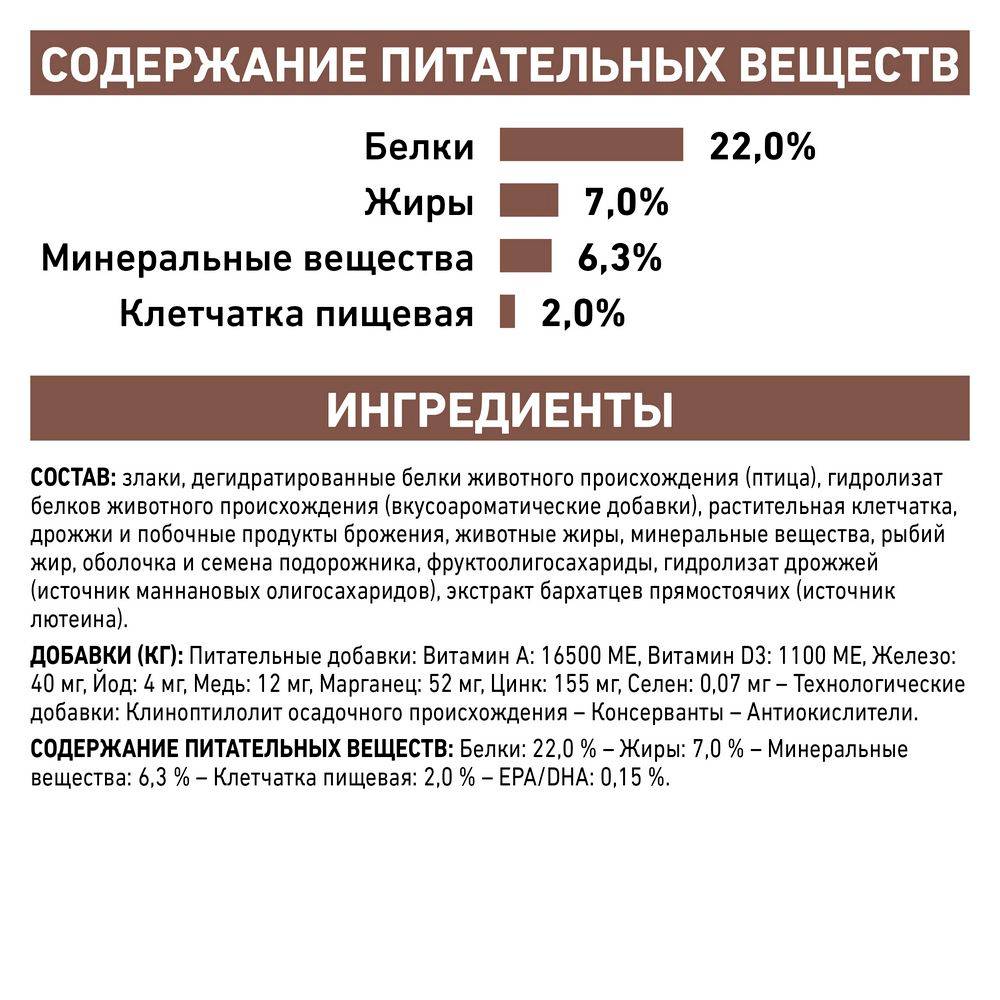Высокоусвояемая формула, содержащая сбалансированный комплекс разных видов клетчатки, в том числе пребиотики, способствует поддержанию здорового пищеварения и оптимального качества стула. Кроме того, специальные маленькие гранулы корма особенно удобны для разгрызания небольшими собаками.