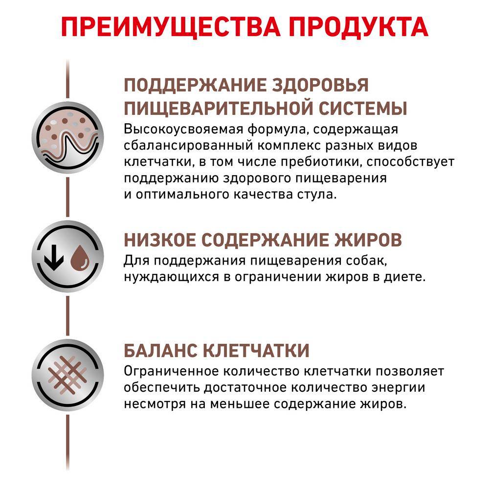 - Низкое содержание жиров. Для поддержания пищеварения собак, нуждающихся в ограничении жиров в диете.