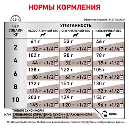 Посоветуйтесь с вашим ветеринарным врачом об употреблении или о продлении периода использования данного корма. Начальный курс применения сухого корма GASTROINTESTINAL LOW FAT SMALL DOG – 2 месяца при гиперлипидемии.
