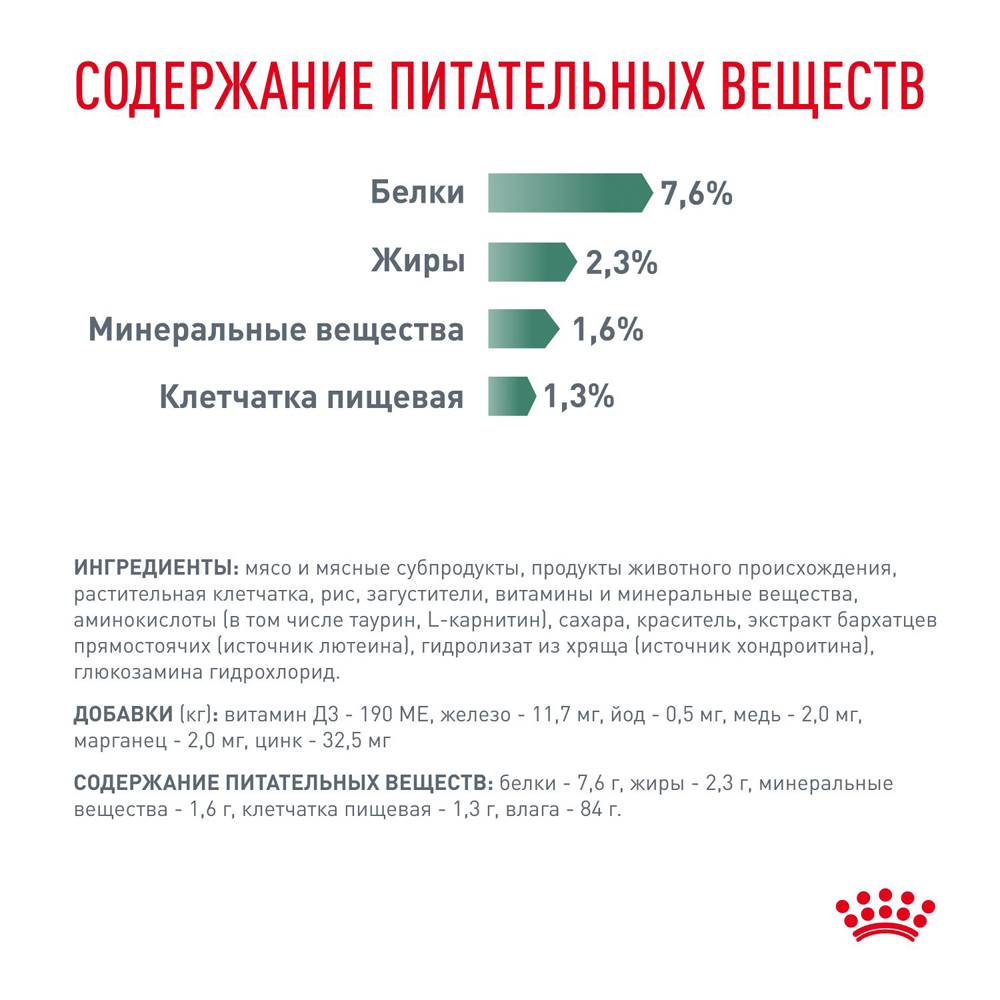 Способствует безопасному снижению веса и уменьшает риск его повторного набора. У 97% кошек вес снизился в течение трех месяцев.