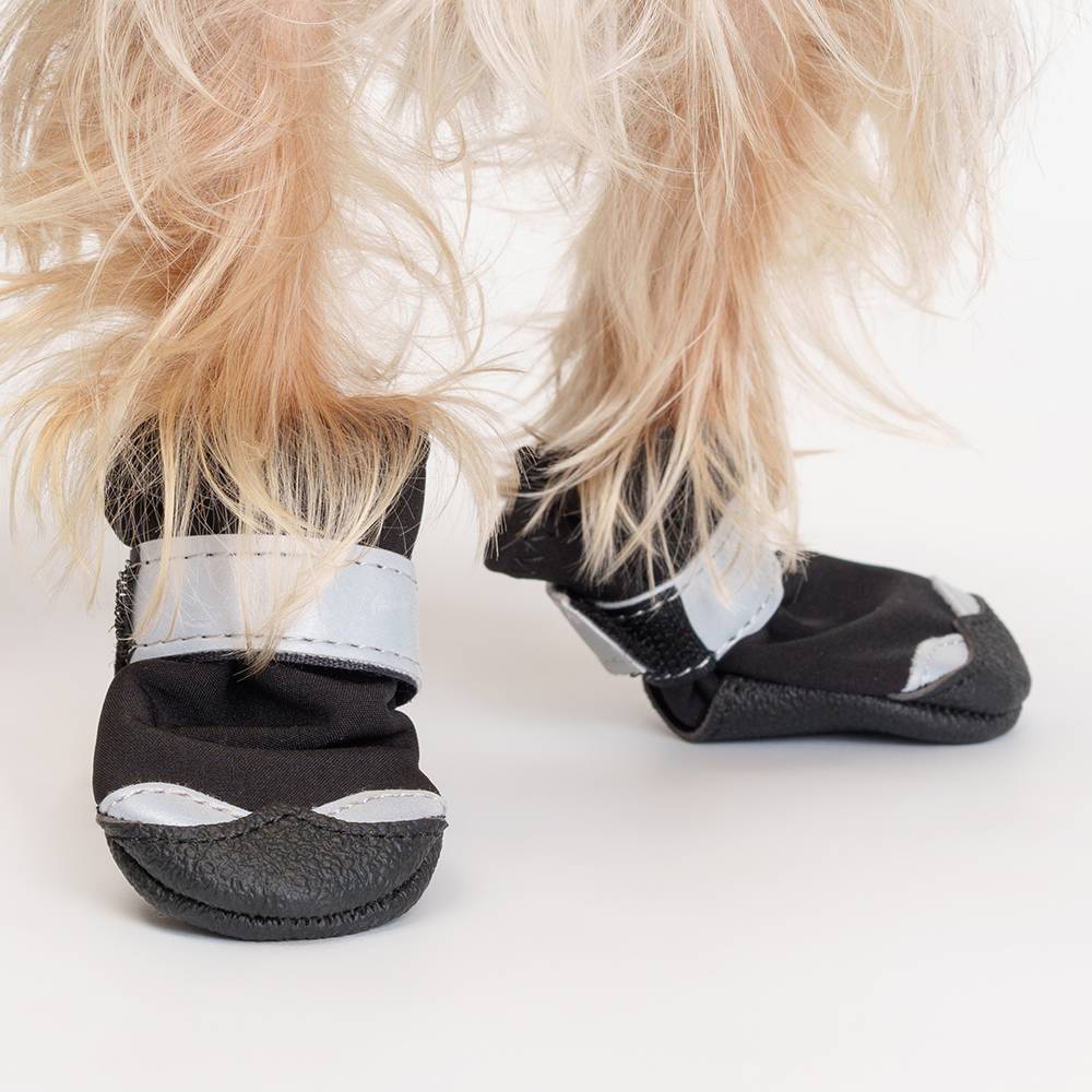- Убедитесь, что размер обуви подобран верно, не сдавливает лапы собаке и не надевается слишком свободно.