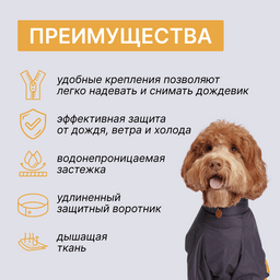 Дождевик от бренда RUNGO – эффективный способ сделать прогулку с питомцем комфортной в любую непогоду. Дождевик защитит Вашего четвероногого друга от сырости, загрязнений и переохлаждения.