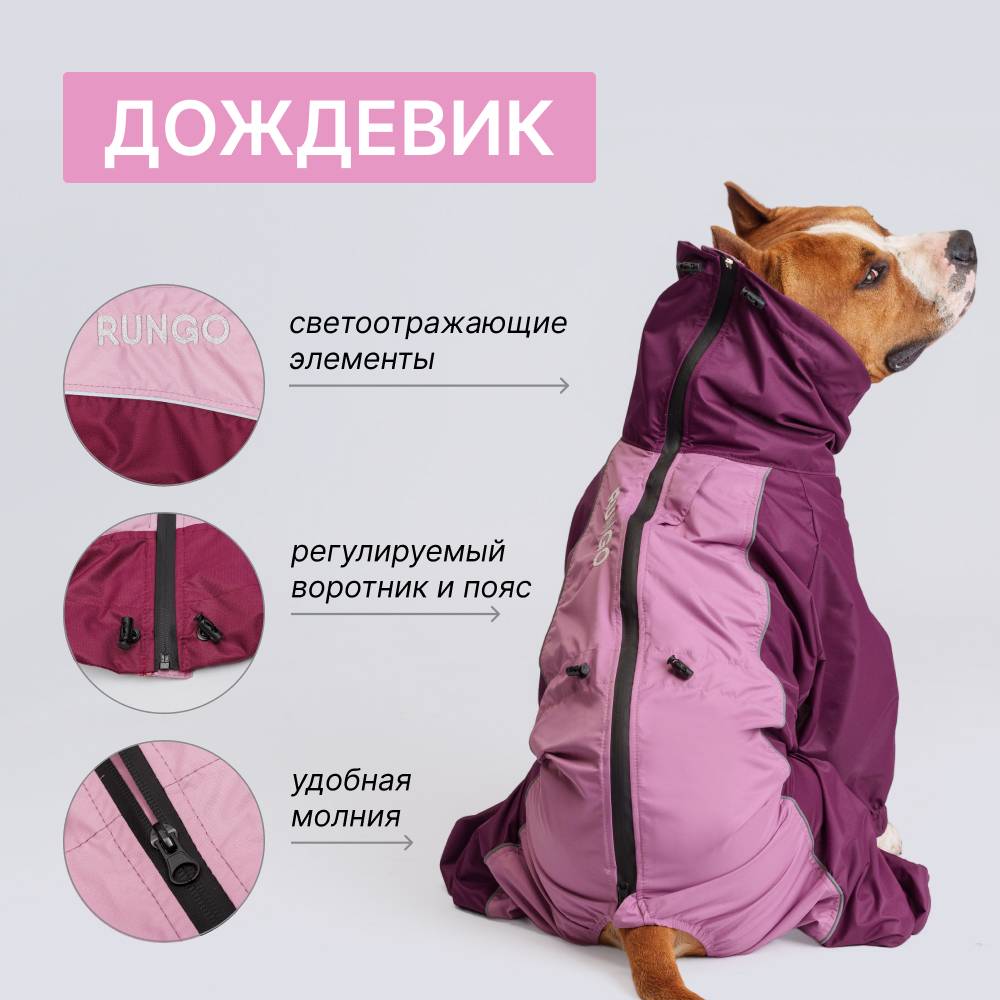Дождевик от бренда RUNGO – эффективный способ сделать прогулку с питомцем комфортной в любую непогоду. Дождевик защитит Вашего четвероногого друга от сырости, загрязнений и переохлаждения.
