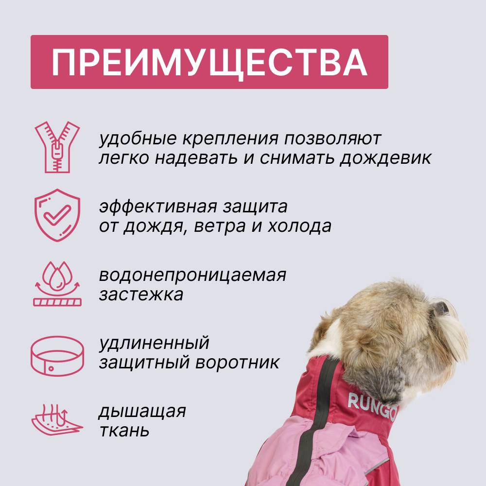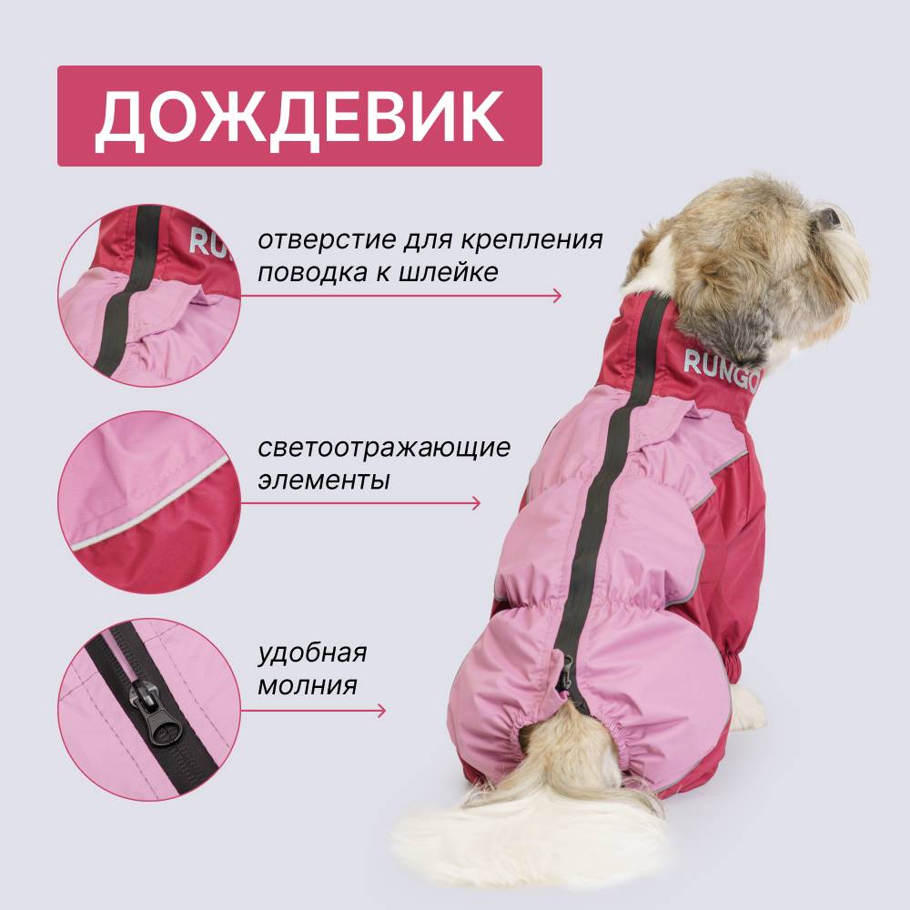 Дождевик от бренда RUNGO – эффективный способ сделать прогулку с питомцем комфортной в любую непогоду. Дождевик защитит вашего четвероногого друга от сырости, загрязнений и переохлаждения.
