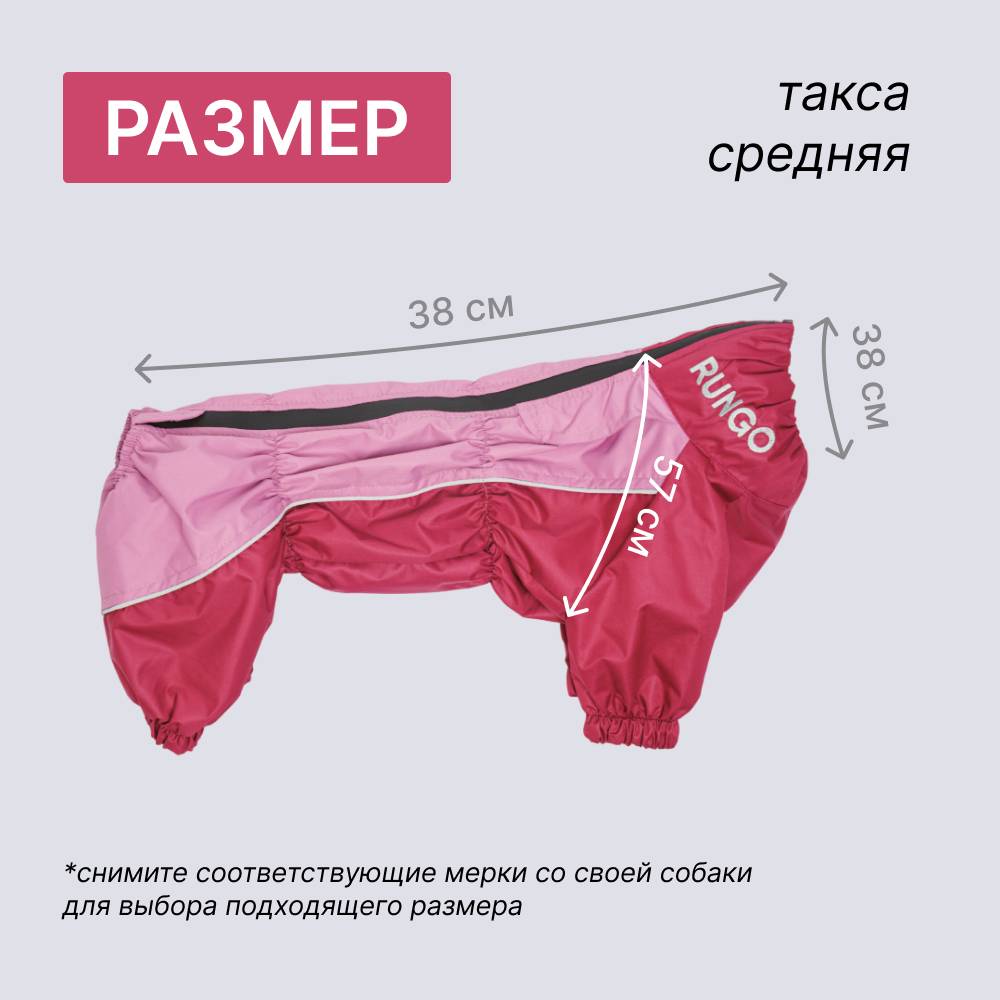 Rungo Дождевик для собак породы такса средняя, обхват шеи 38 см, обхват груди 57 см, длина спины 38 см, бордо (девочка)
