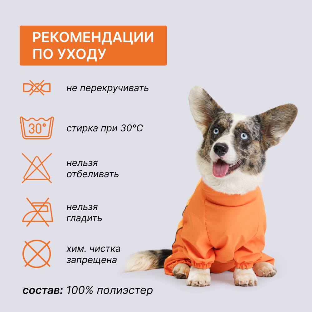 Rungo Дождевик для собак породы вельш-корги, обхват шеи 46 см, обхват груди 69 см, длина спины 42 см, оранжевый апельсин (девочка)
