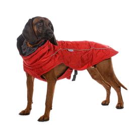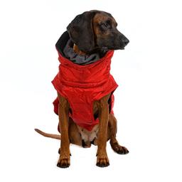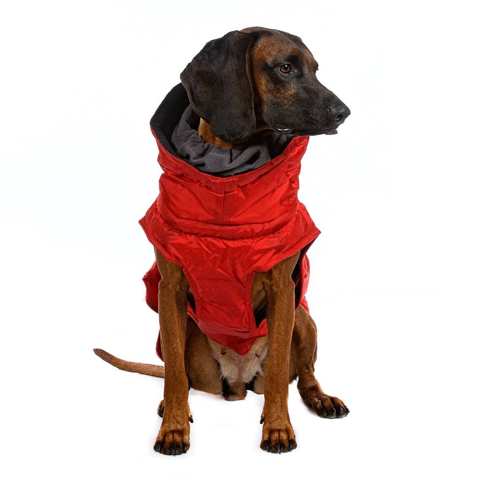 Попона для собак красная с флисовым удлиненным воротником предназначена для защиты питомца от холода и влаги. Идеальна для собак крупных пород.