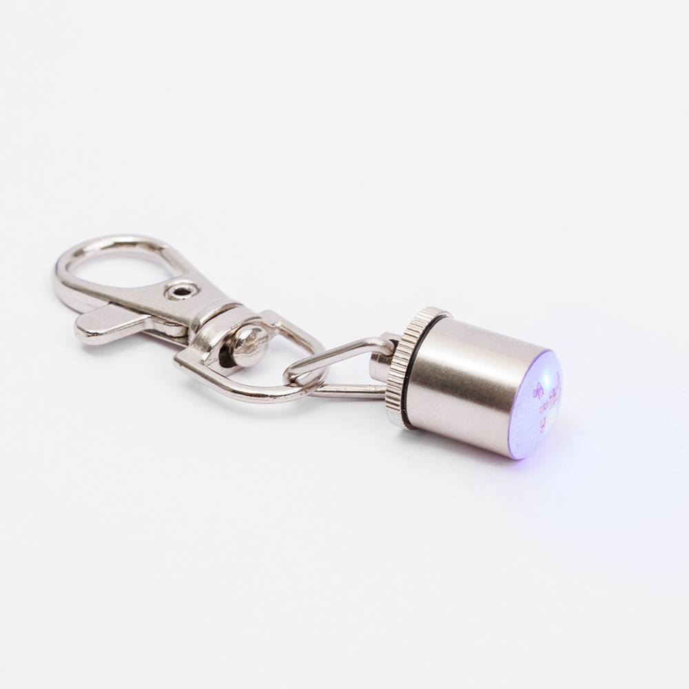 - Легко прикрепляется к ошейнику, поводку или одежде при помощи карабина.