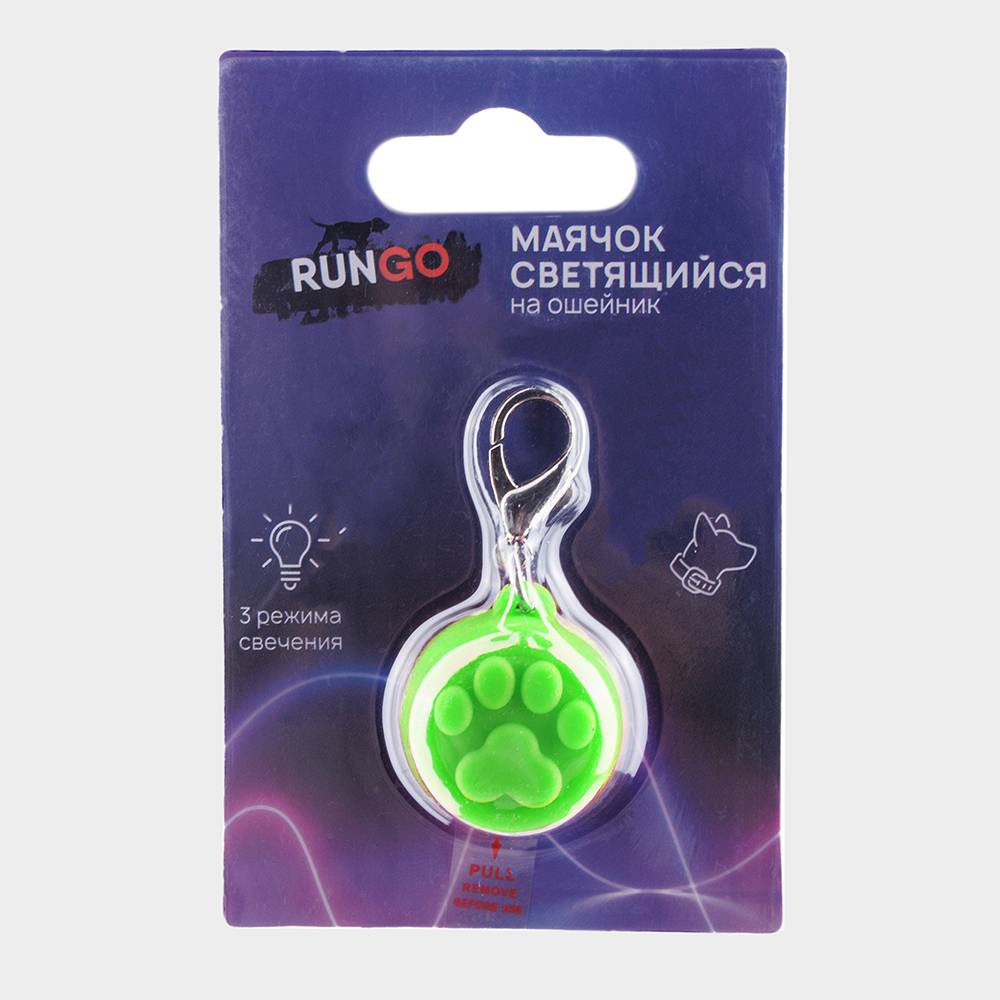 Светящийся светодиодный мини-маячок на ошейник от бренда Rungo обеспечит видимость питомца в темное время суток для безопасных прогулок.