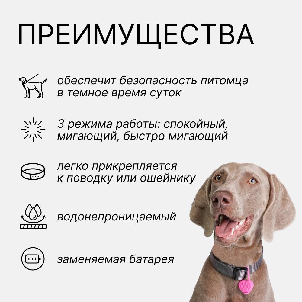 Светящийся маячок от бренда Rungo на ошейник понадобится вам для прогулок в темное время суток.