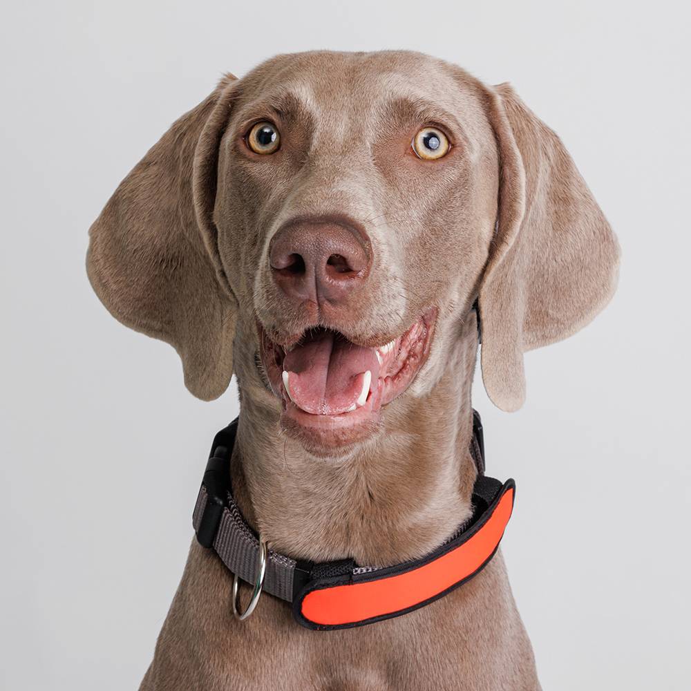 Оранжевая светящаяся накладка на ошейник от бренда Rungo для безопасных прогулок в темное время суток.