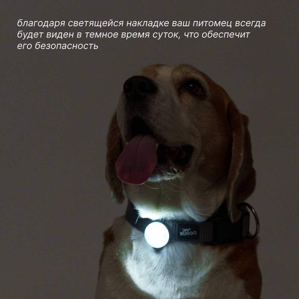 Благодаря светящейся накладке от бренда Rungo ваш питомец всегда будет виден в темное время суток, что обеспечит его безопасность и ваше спокойствие.