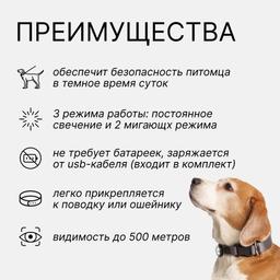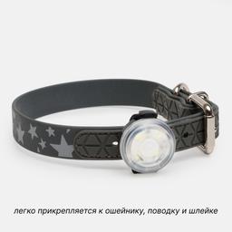 - Легко прикрепляется к поводку, ошейнику и шлейке.