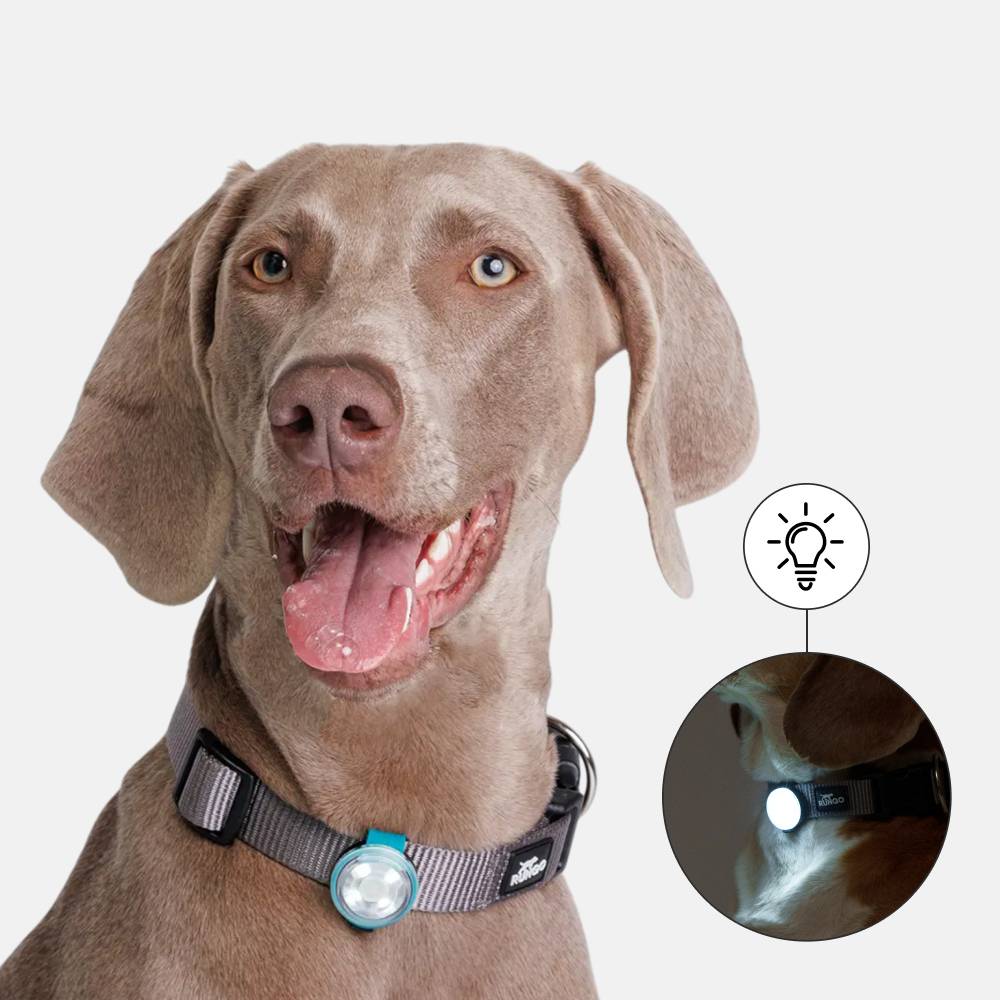 - Легко прикрепляется к поводку, ошейнику и шлейке.