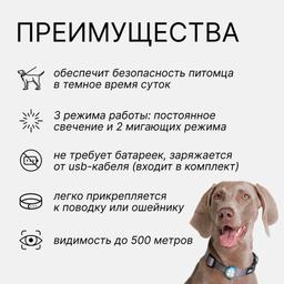 С таким аксессуаром ваш питомец не потеряется во время прогулки в темное время суток, что особенно актуально в осенне-зимний период.