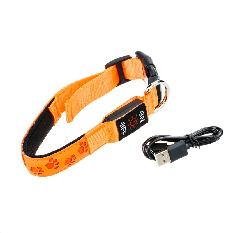 Rungo Ошейник светящийся c косточкой 31-41см S оранжевый