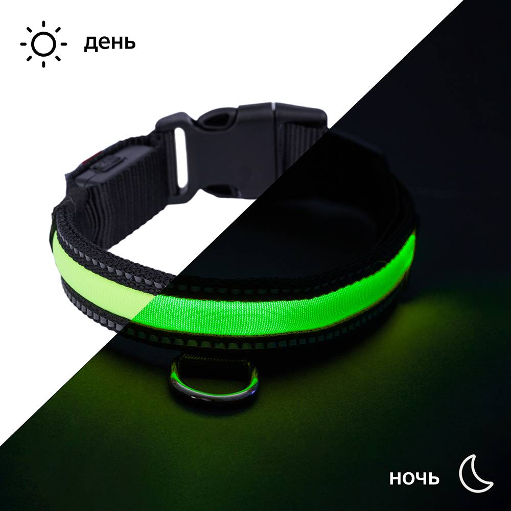 Rungo Ошейник для собак светящийся нейлоновый, S, обхват шеи 31-41 см, ширина 2,5 см, зеленый
