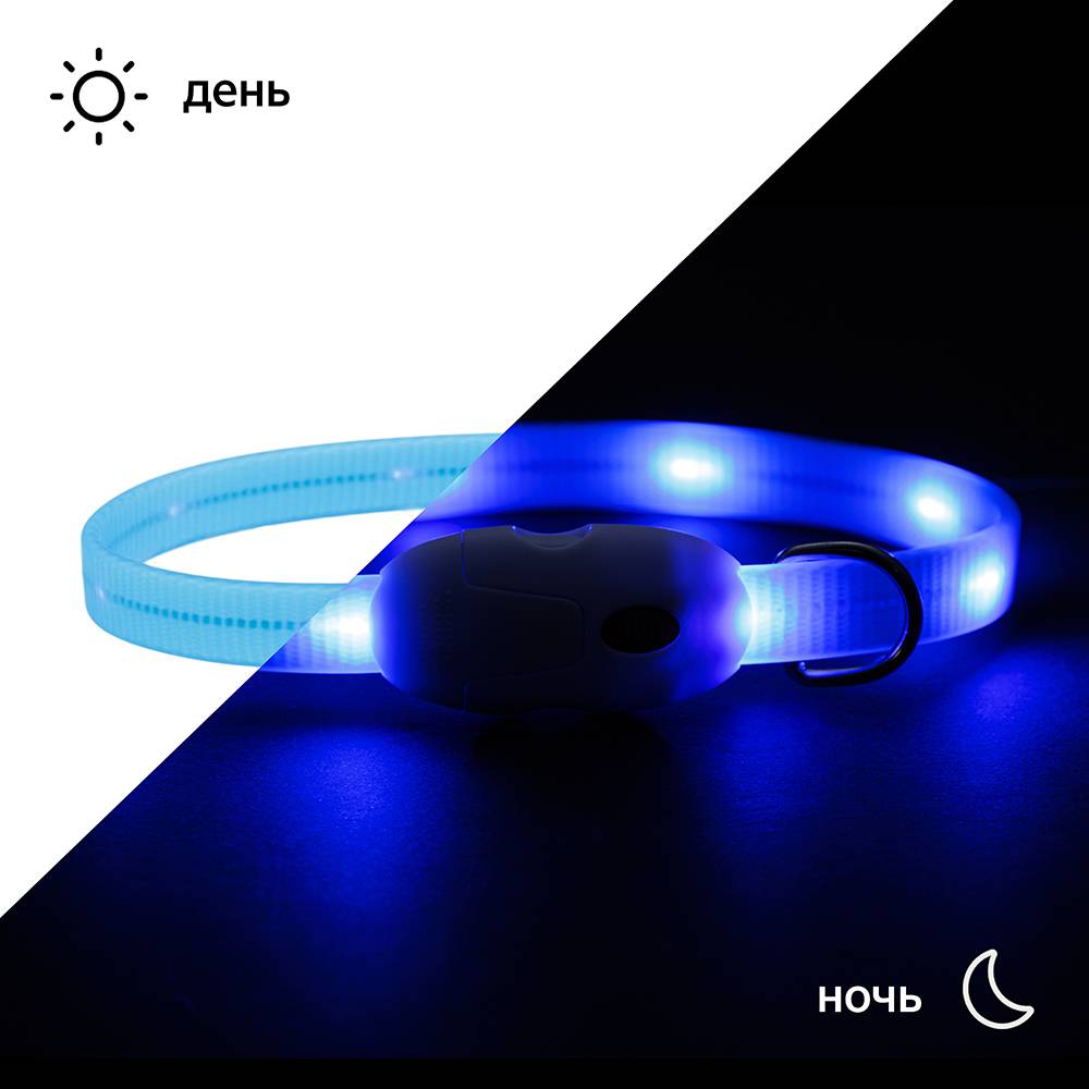 Круглый светящийся ошейник от Rungo выдержит любые погодные условия и не испортится из-за дождя или снега.