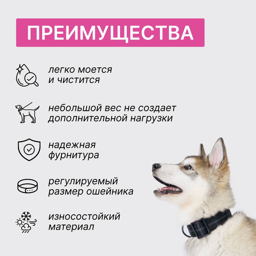 - Не натирает кожу и не создает дополнительную нагрузку на шею собаки.
