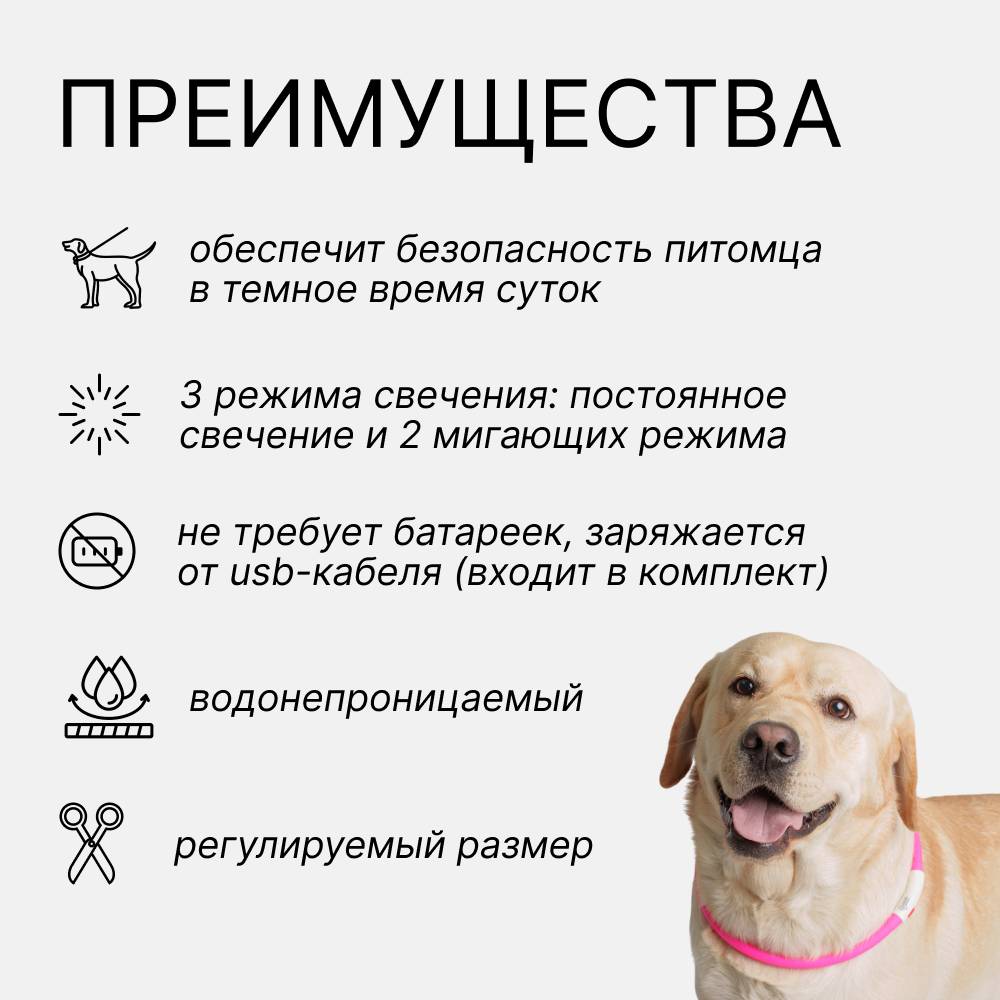 Круглый светящийся ошейник для собак от бренда Rungo сделает прогулки с питомцем безопаснее.