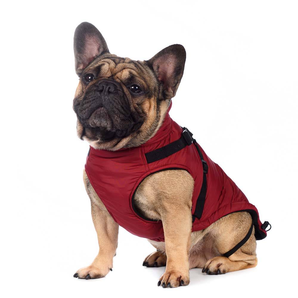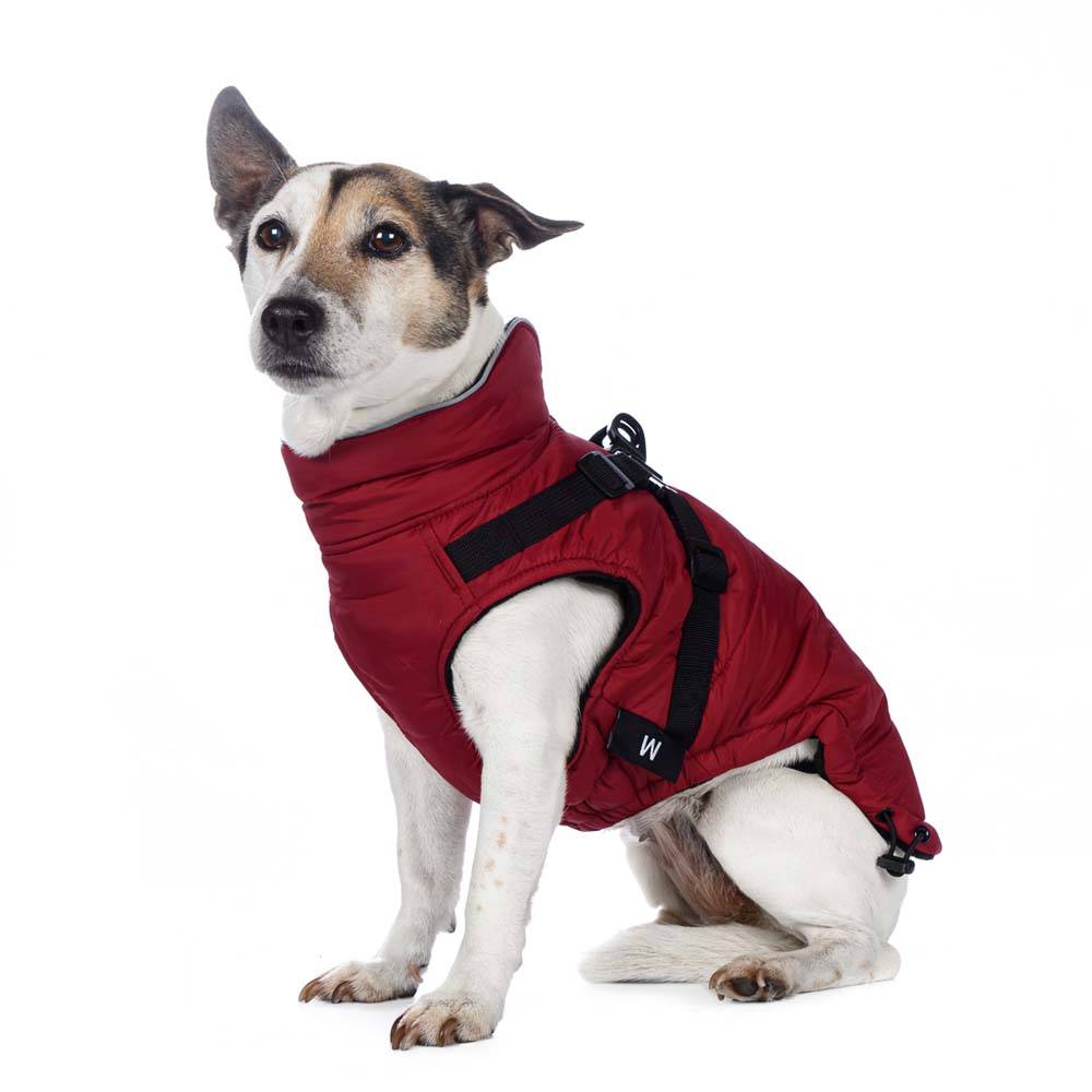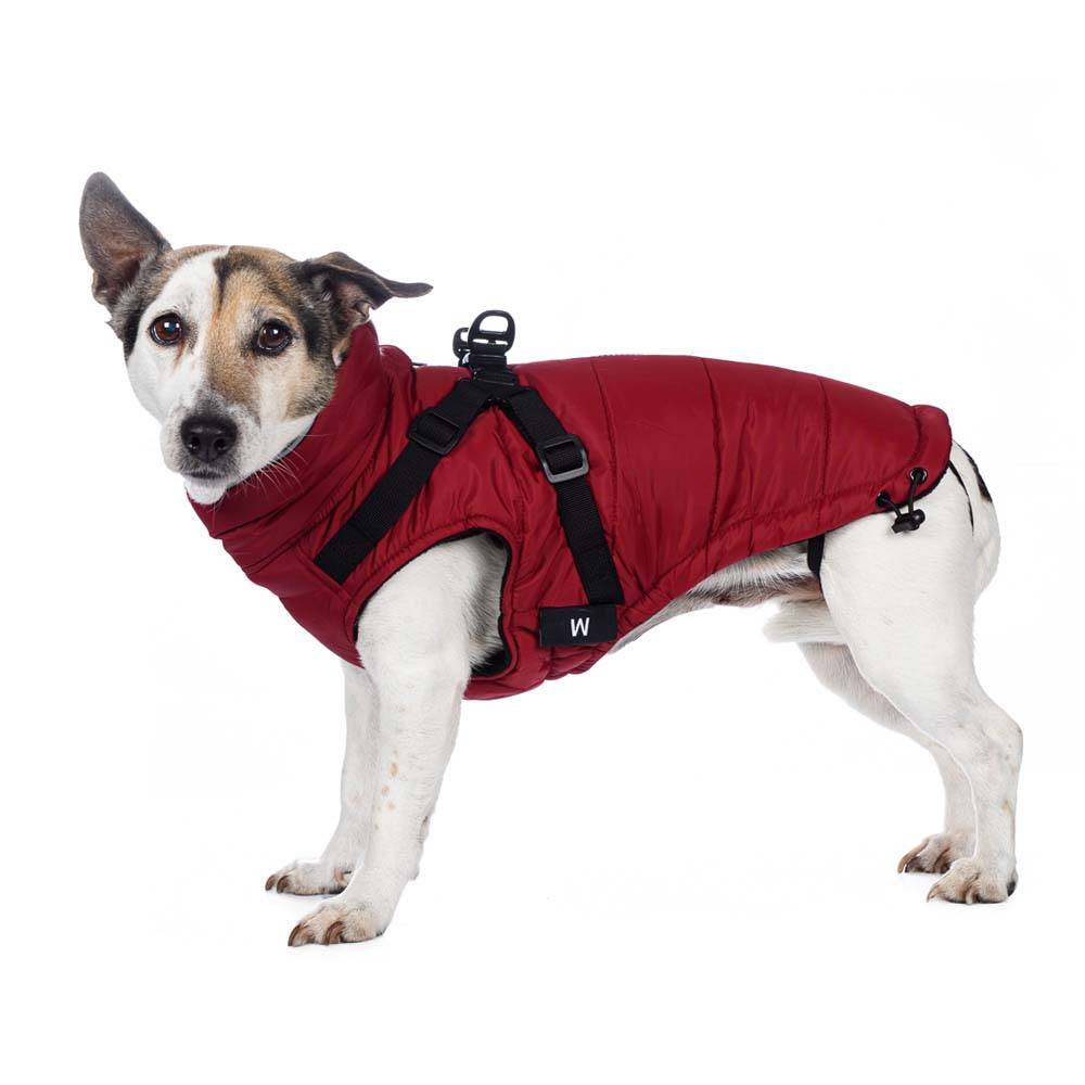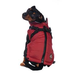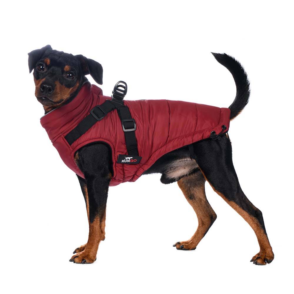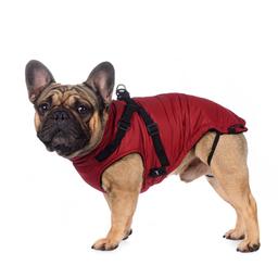 Попона теплая на молнии со шлейкой на спине для собак бордового цвета от бренда Rungo. Во время прогулок в холодное время года владельцы собак сталкиваются с тем, что одновременное использование одежды и ошейника с поводком не всегда удобно для собаки, особенно для собак мелких пород. Мы предлагаем вам уникальное решение этой проблемы - попона с регулируемой шлейкой!