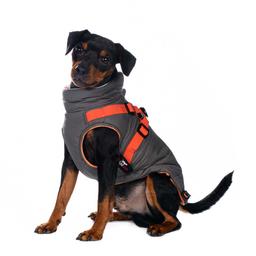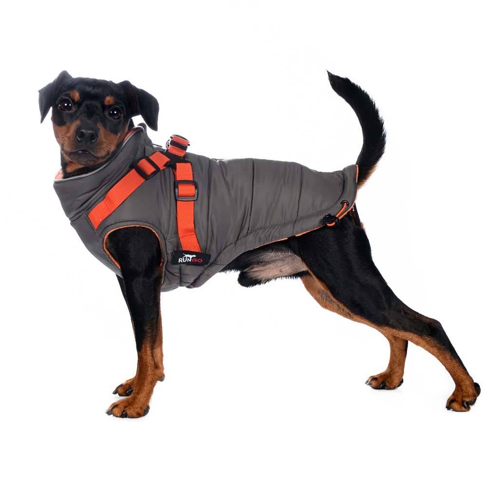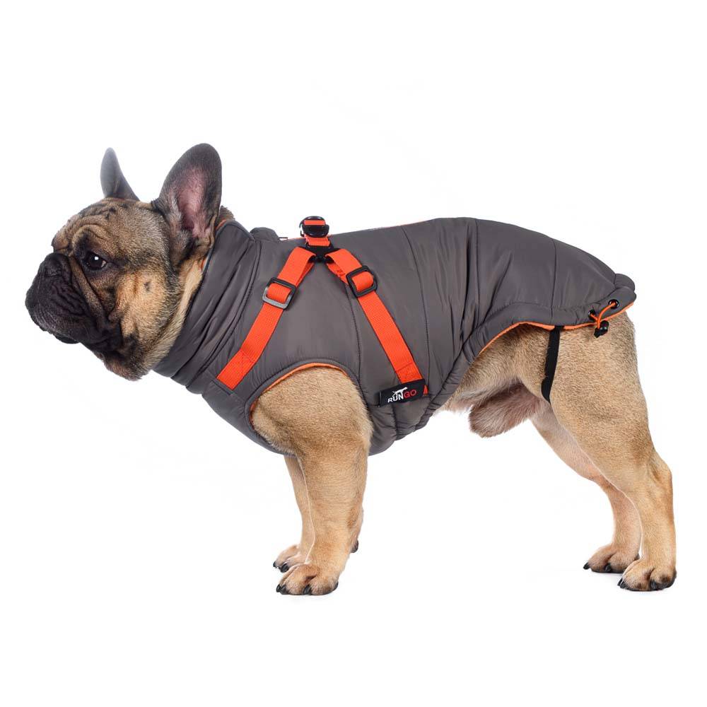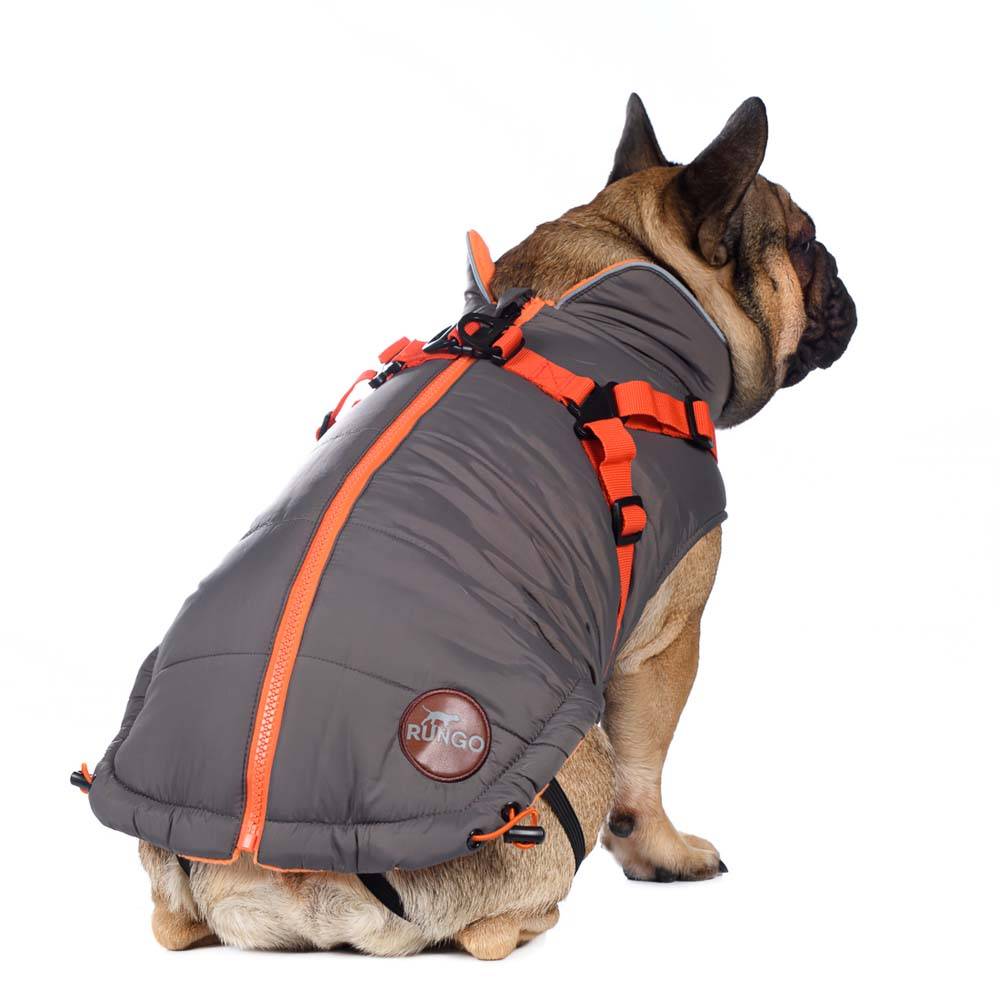 Попона теплая на молнии со шлейкой на спине для собак серого цвета от бренда Rungo. Во время прогулок в холодное время года владельцы собак сталкиваются с тем, что одновременное использование одежды и ошейника с поводком не всегда удобно для собаки, особенно для собак мелких пород. Мы предлагаем вам уникальное решение этой проблемы - попона с регулируемой шлейкой!