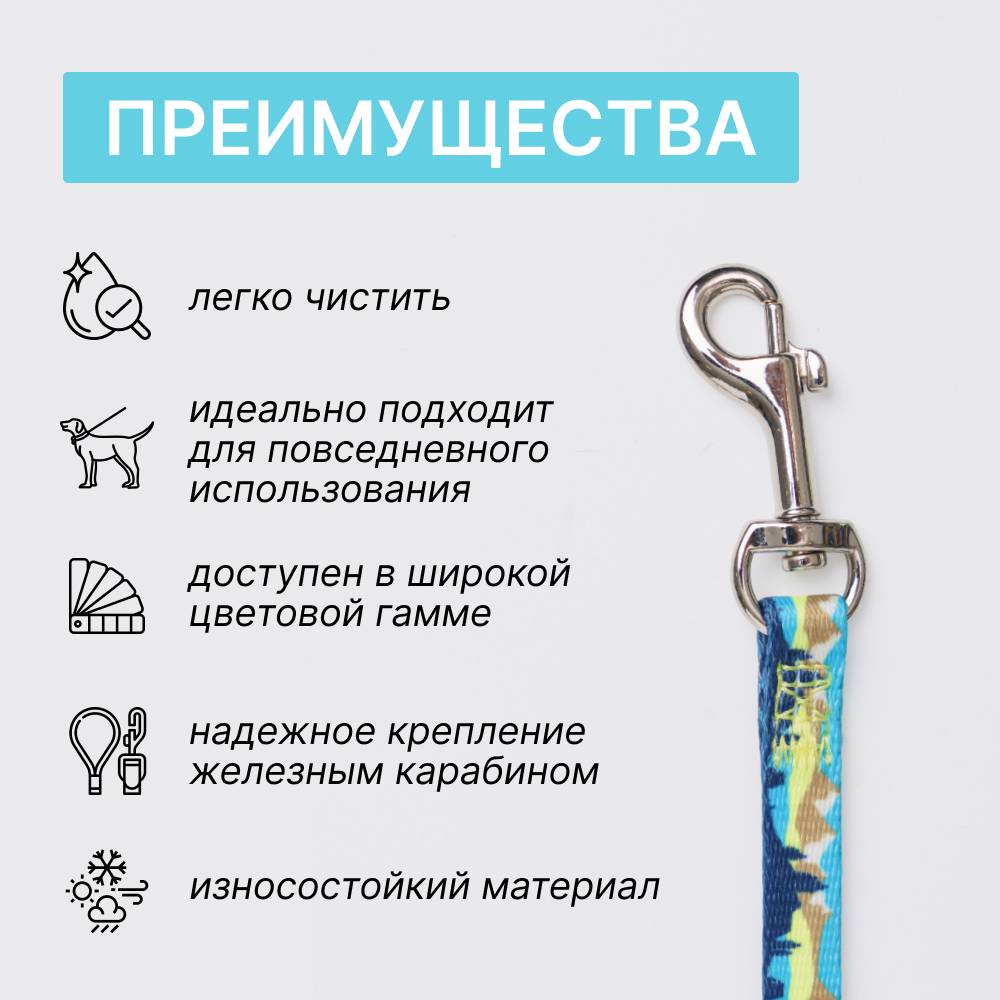 • Надежный карабин для крепления к ошейнику/шлейке.