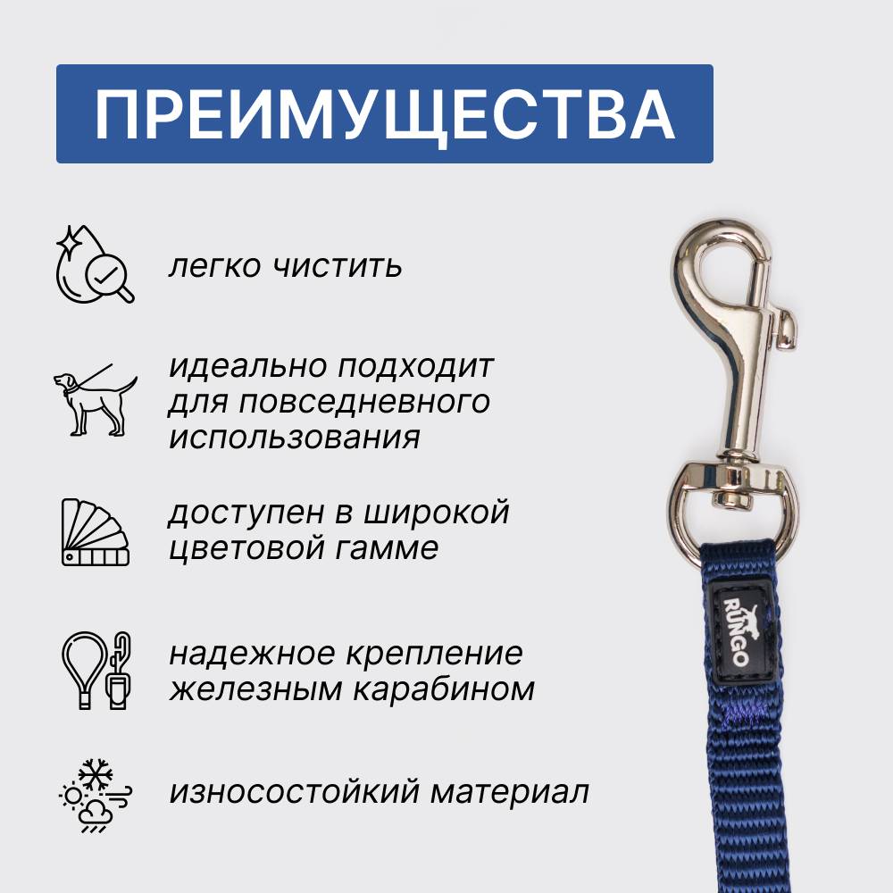 Поводок из базовой коллекции от бренда RUNGO – надежный аксессуар для комфортных прогулок.
