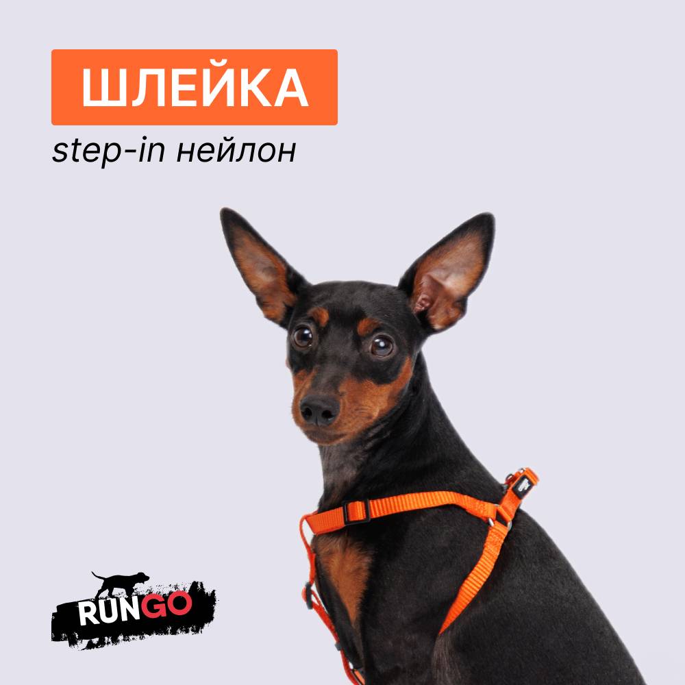 Шлейка для собак Step-In от бренда Rungo – это практичный и удобный аксессуар для комфортных прогулок с питомцем.