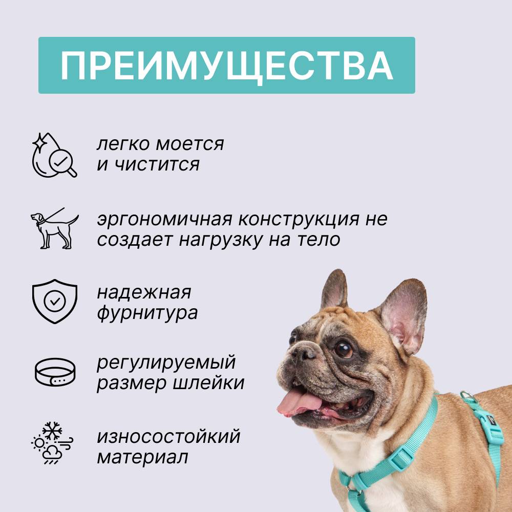 - При натяжении поводка шлейка не съезжает на шею собаки благодаря креплению в зоне спины.