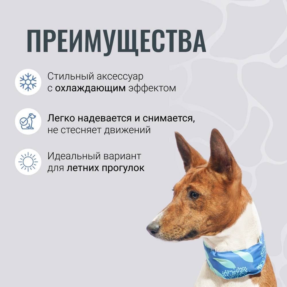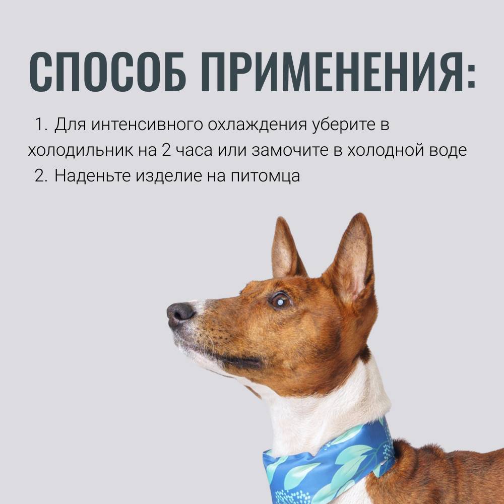 - Охлаждающий эффект – замочите ошейник в холодной воде, отожмите и наденьте на питомца.