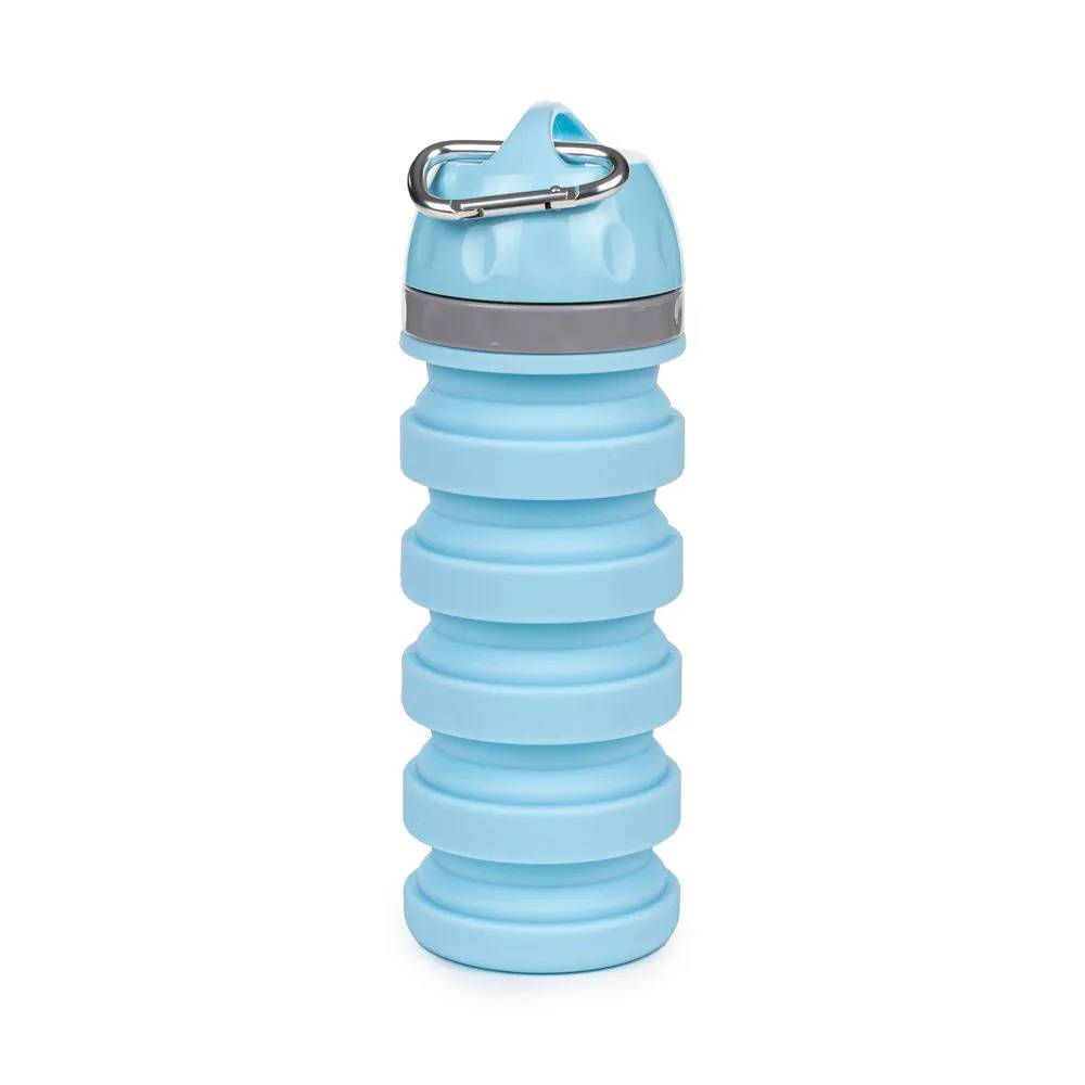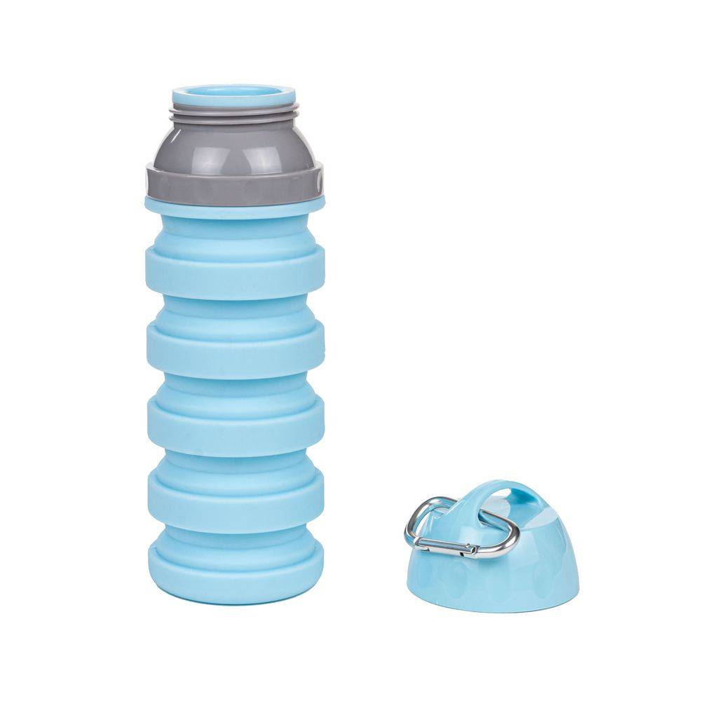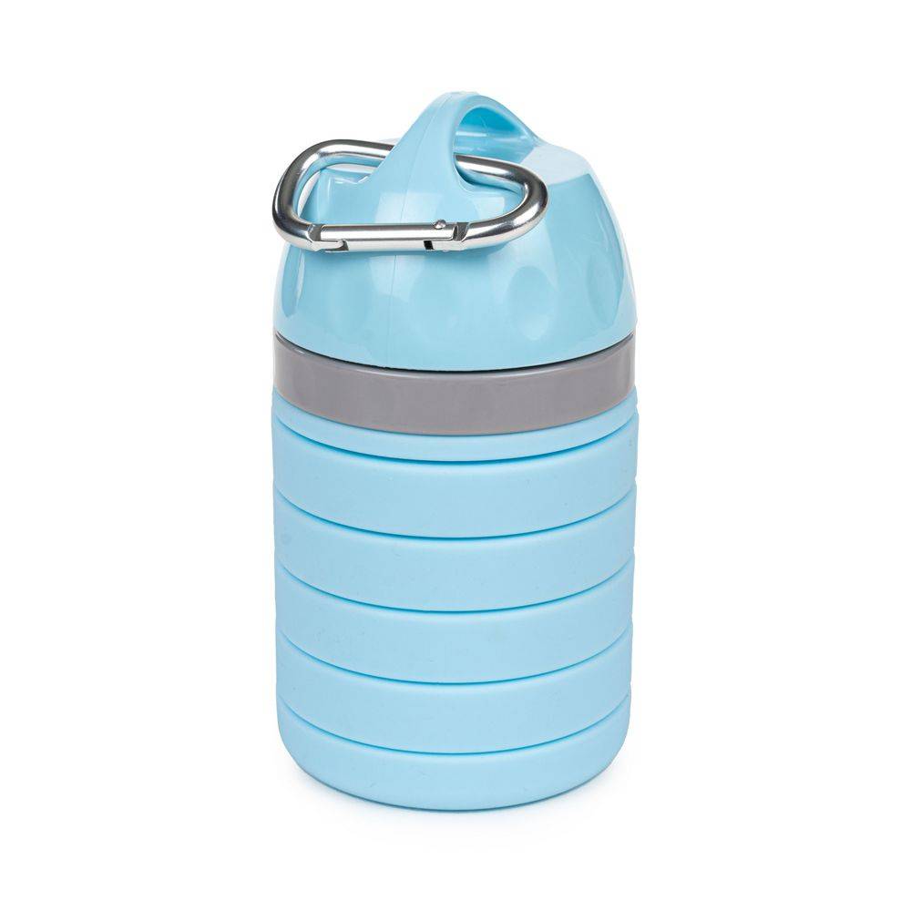 - Бутылка для воды не бьется, занимает мало места за счет складывающейся конструкции, легко крепится карабином к рюкзаку или поясу.