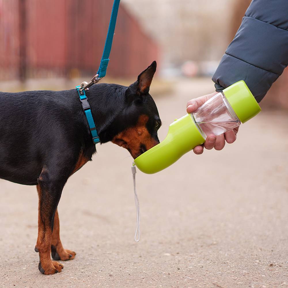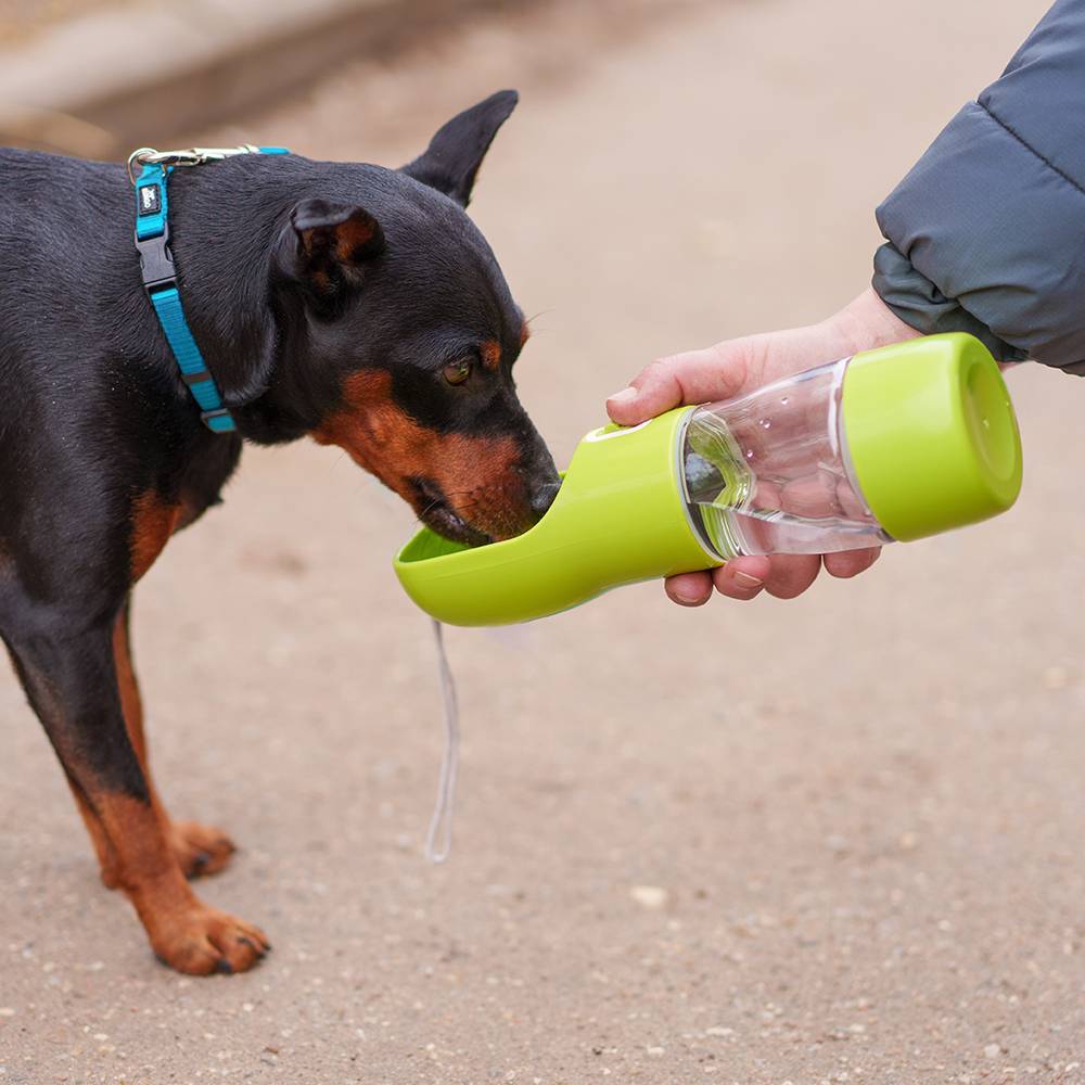 - благодаря компактному размеру и шнурку бутылку удобно брать на прогулки и в путешествия с питомцем.