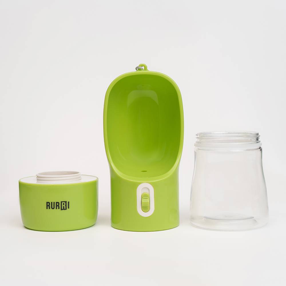 Дорожная бутылка 2в1 от бренда Rurri позволит напоить и накормить вашего питомца во время длительной прогулки или путешествия.