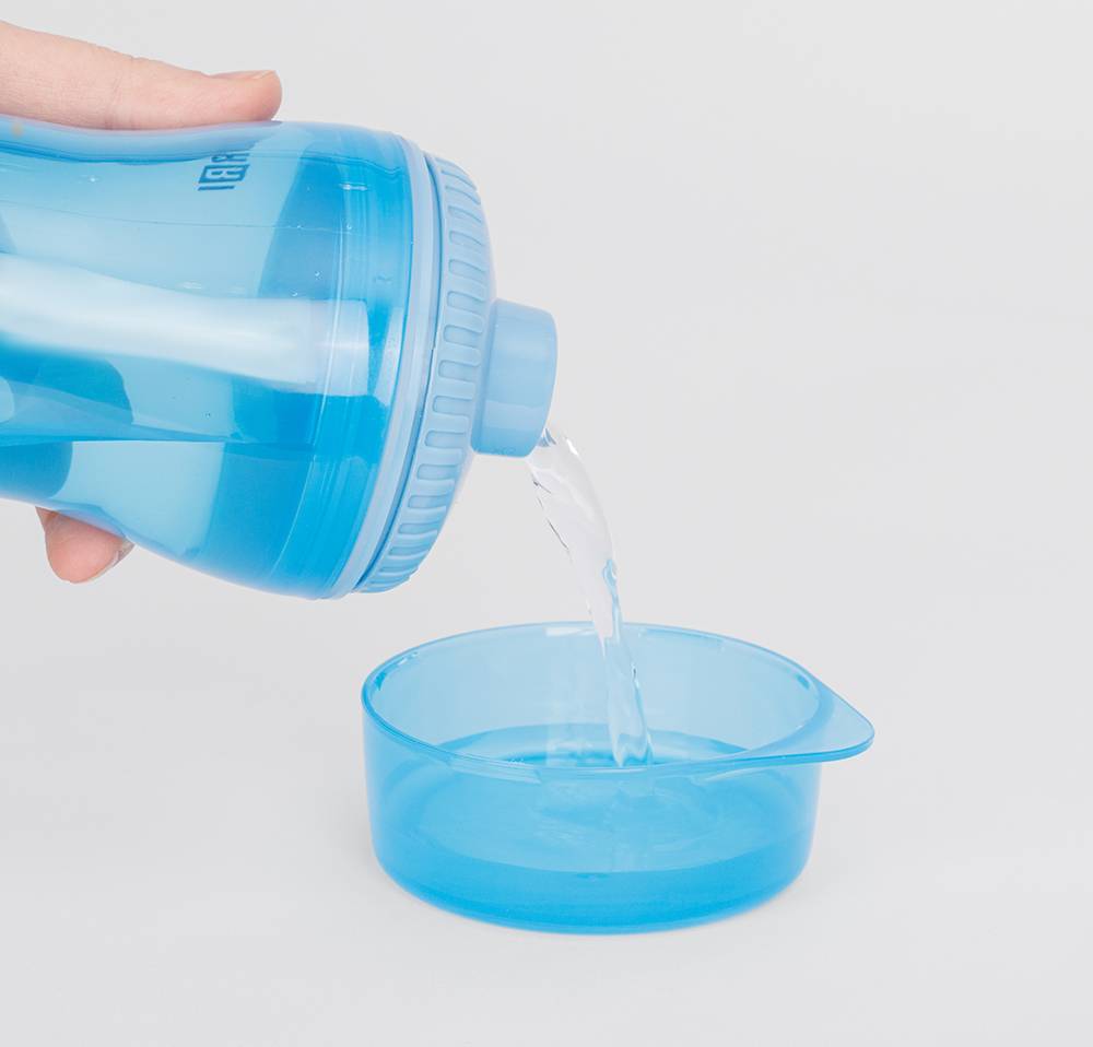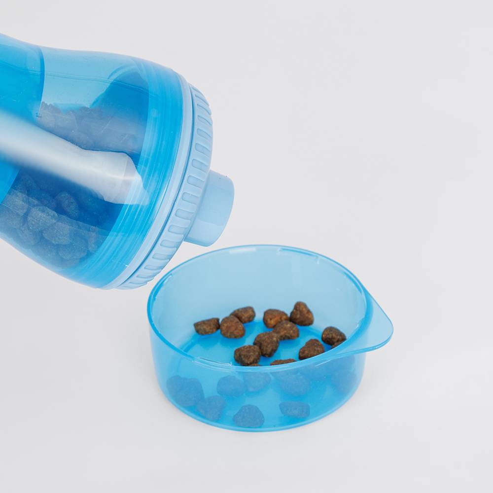 - Бутылка разделена на 2 части: для хранения сухого корма и воды.