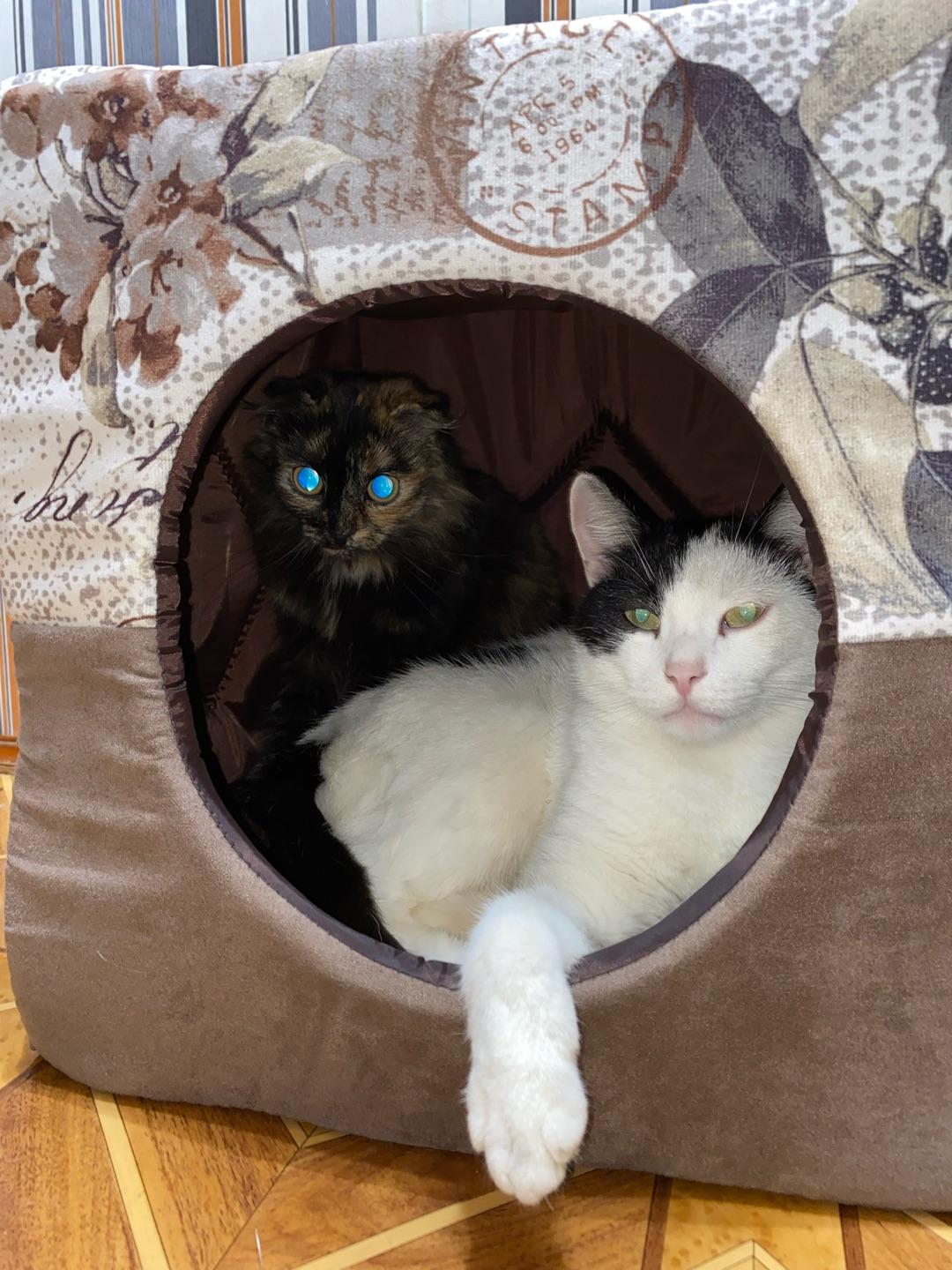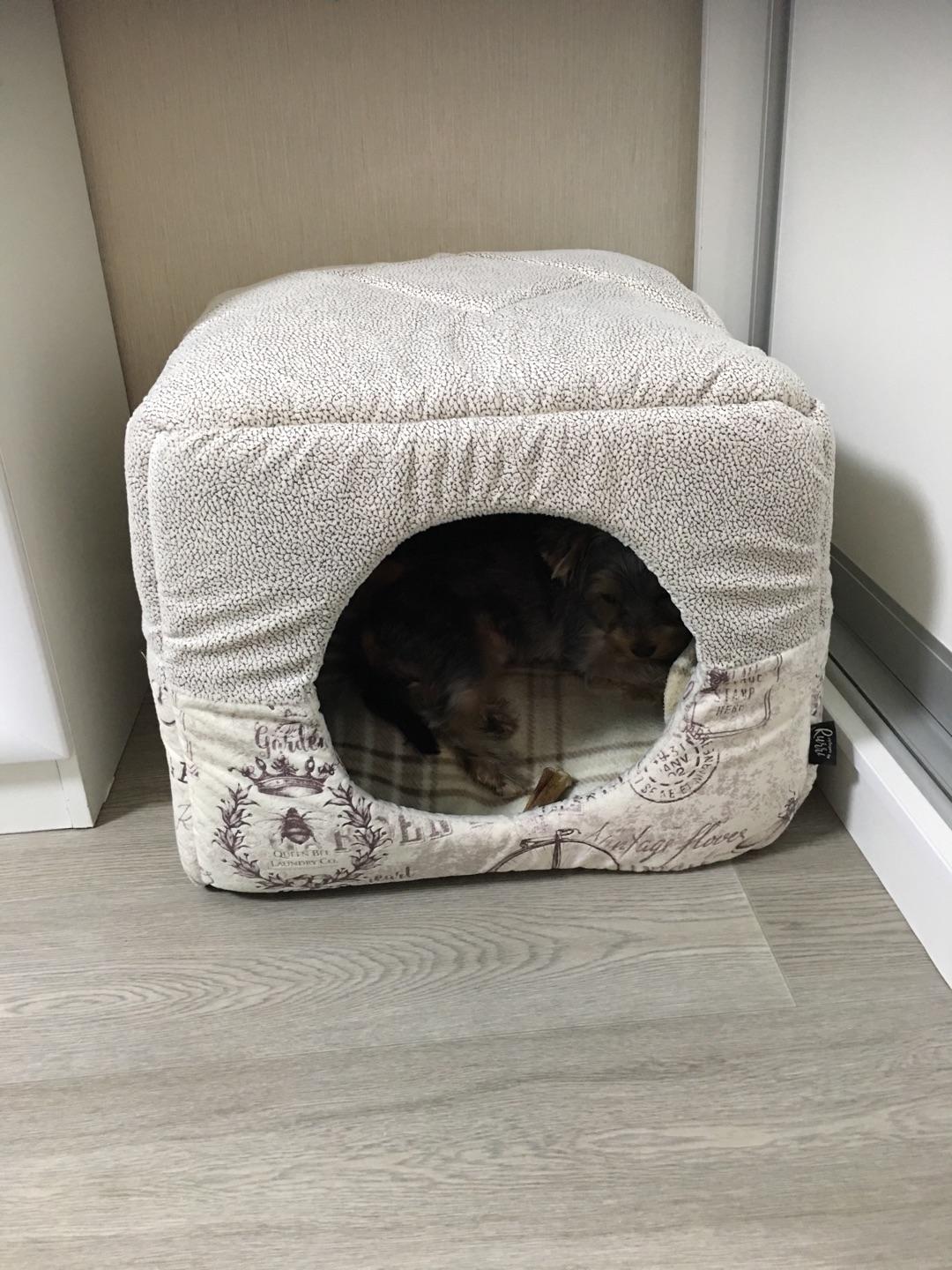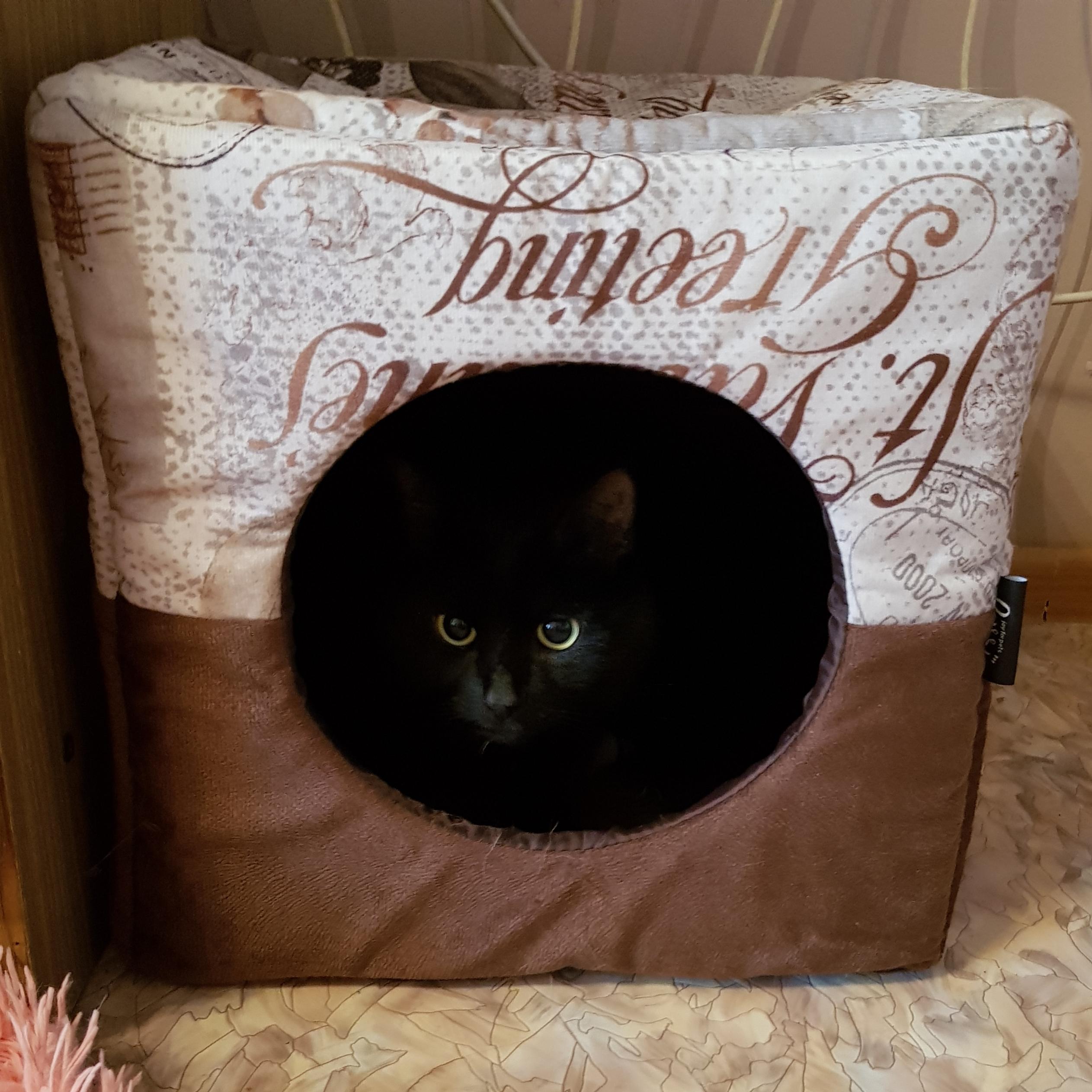 - Уникальная конструкция дома имеет два варианта использования: лежанка с высокими бортиками и внутренней подушкой и закрытый домик с подушкой внутри.