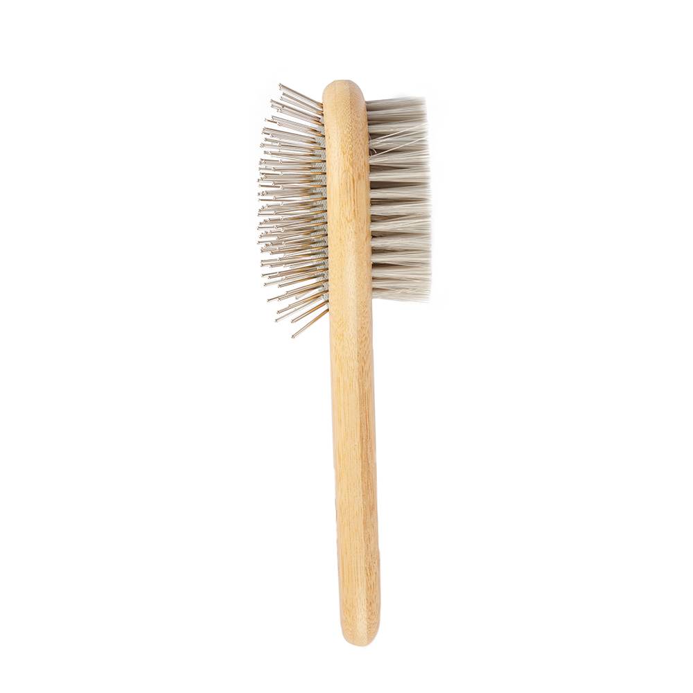 Двухсторонняя расческа-щетка из бамбука подходит собакам и кошкам короткошерстных пород.