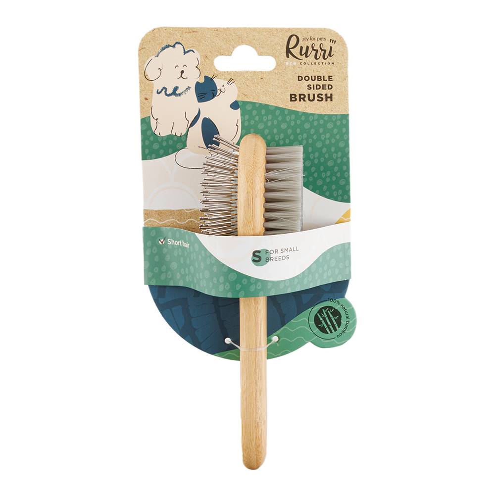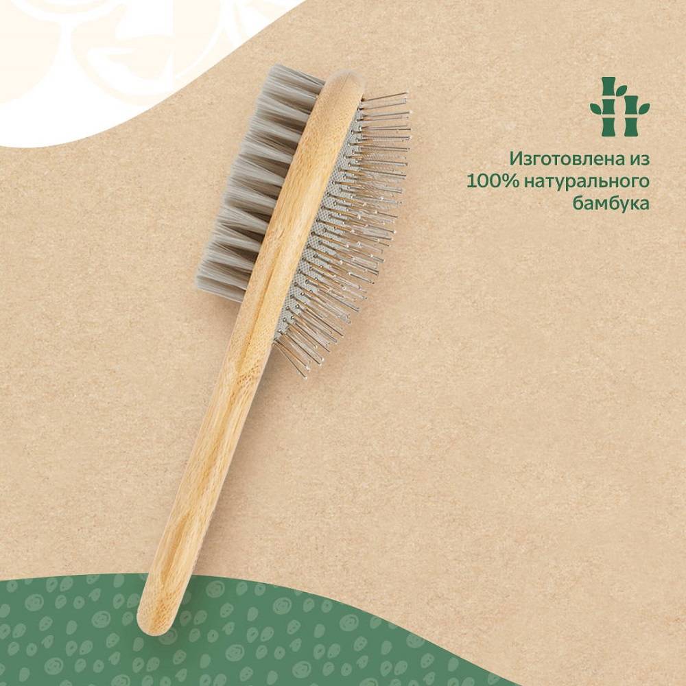 Двухсторонняя расческа-щетка из бамбука подходит собакам и кошкам короткошерстных пород.