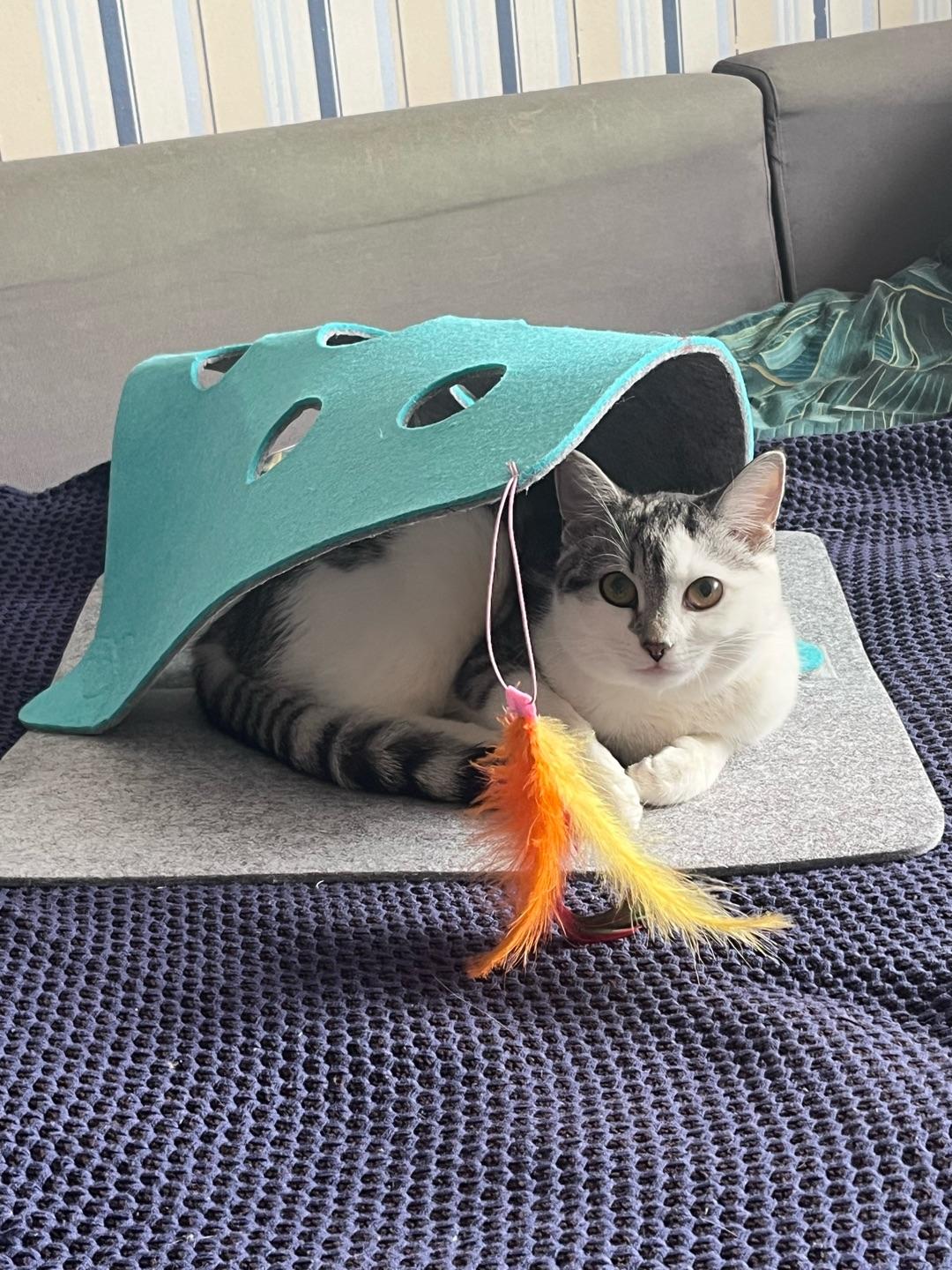 Подбирайте игрушку согласно размерам питомца. У кошки не должно быть возможности проглотить изделие целиком или какие-либо его части. Если любимец склонен к поеданию несъедобных предметов, давайте игрушку под присмотром.