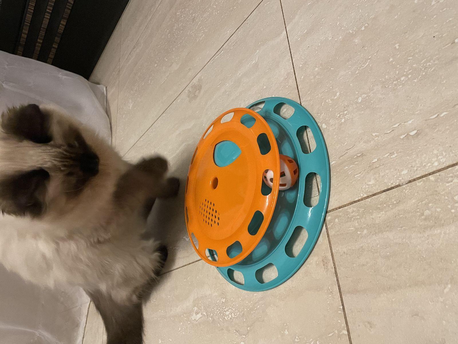 - Для дополнительного привлечения внимания кошки, в треке имеется отсек для кошачьей мяты, запах которой нравится усатым хищникам.